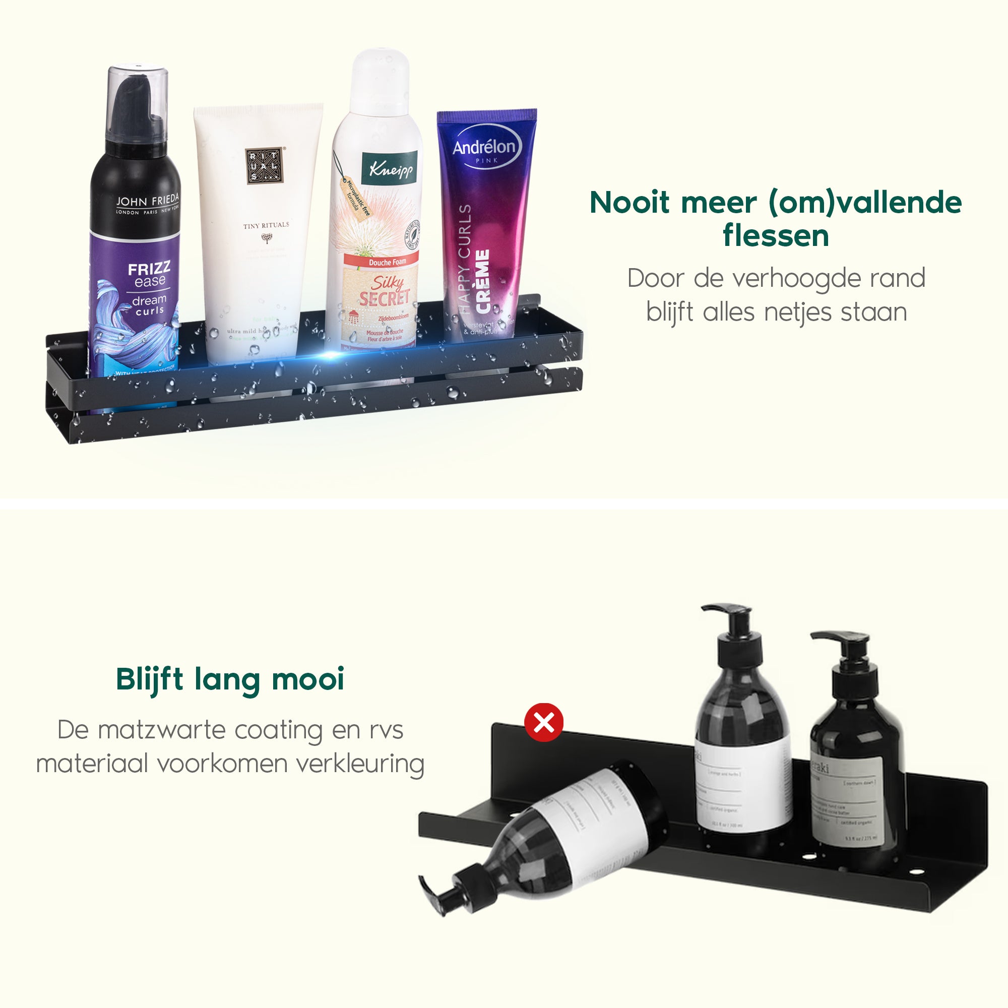 Klaar voor een opgeruimde, stijlvolle douche? Bestel het matzwarte doucherek vandaag nog en ervaar het verschil!