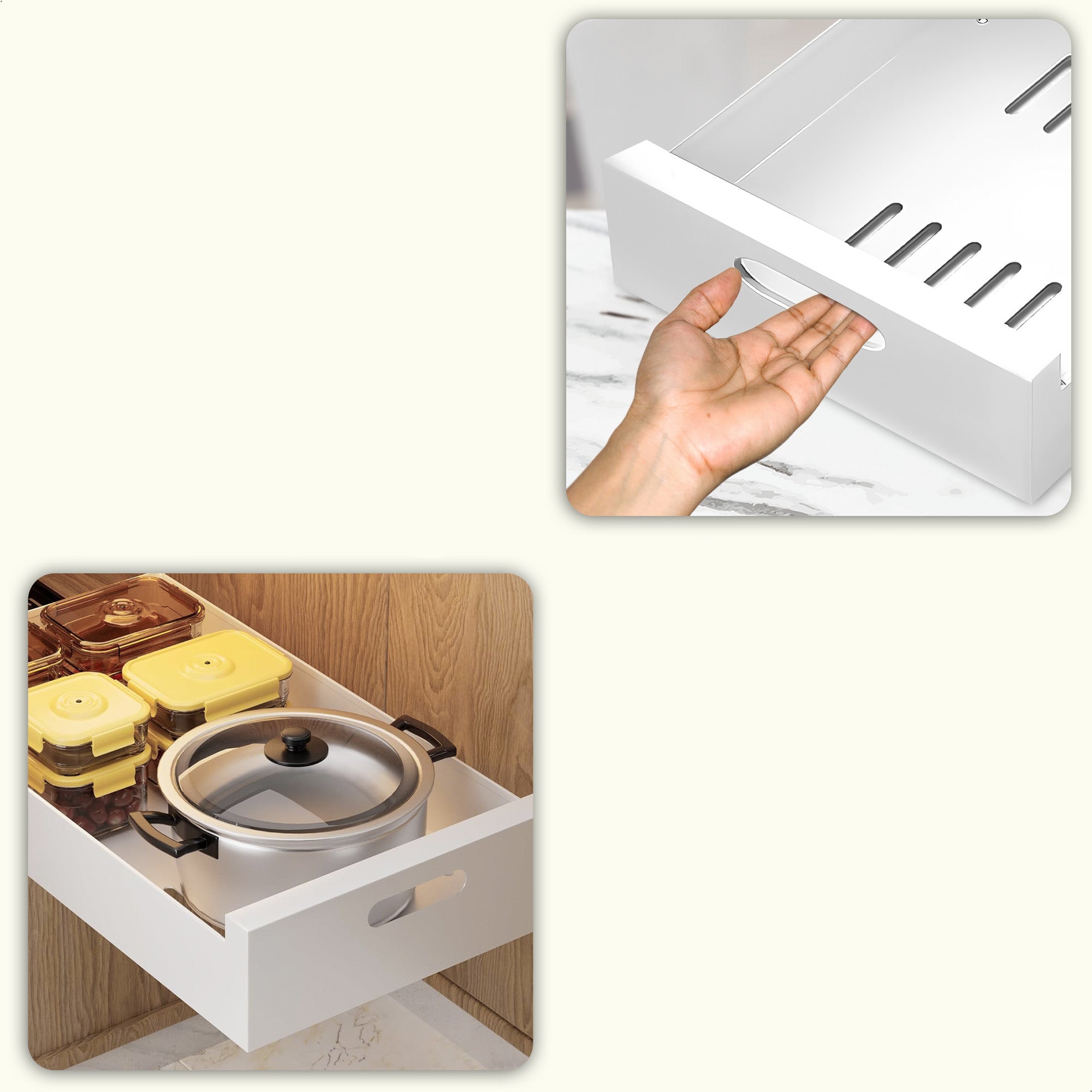 Nooit snel bij je voorraad kunnen of altijd aan het zoeken in een rommelige keukenkast? Maak het jezelf gemakkelijker met een keukenkast organizer ladesysteem. Perfect voor de gootsteenkast of keukenkastjes. Zo staan al je keukenspullen netjes op hun plek én schuif je ze makkelijk naar voren. Voordelen ✓ Montage zonder boren ✓ Beter gebruik van kastruimte ✓ Gemakkelijker spullen pakken ✓ Gemaakt van sterk staal Robuust en stabiel De schuiflade bestaat uit een frame van sterk aluminium met stalen geleiders. De nanotape is krachtig zodat hij jarenlang blijft zitten. Het systeem draagt makkelijk 25 KG zoals zware pannen, servies, voedingsmiddelen, schoonmaakspullen of keukenapparaten.