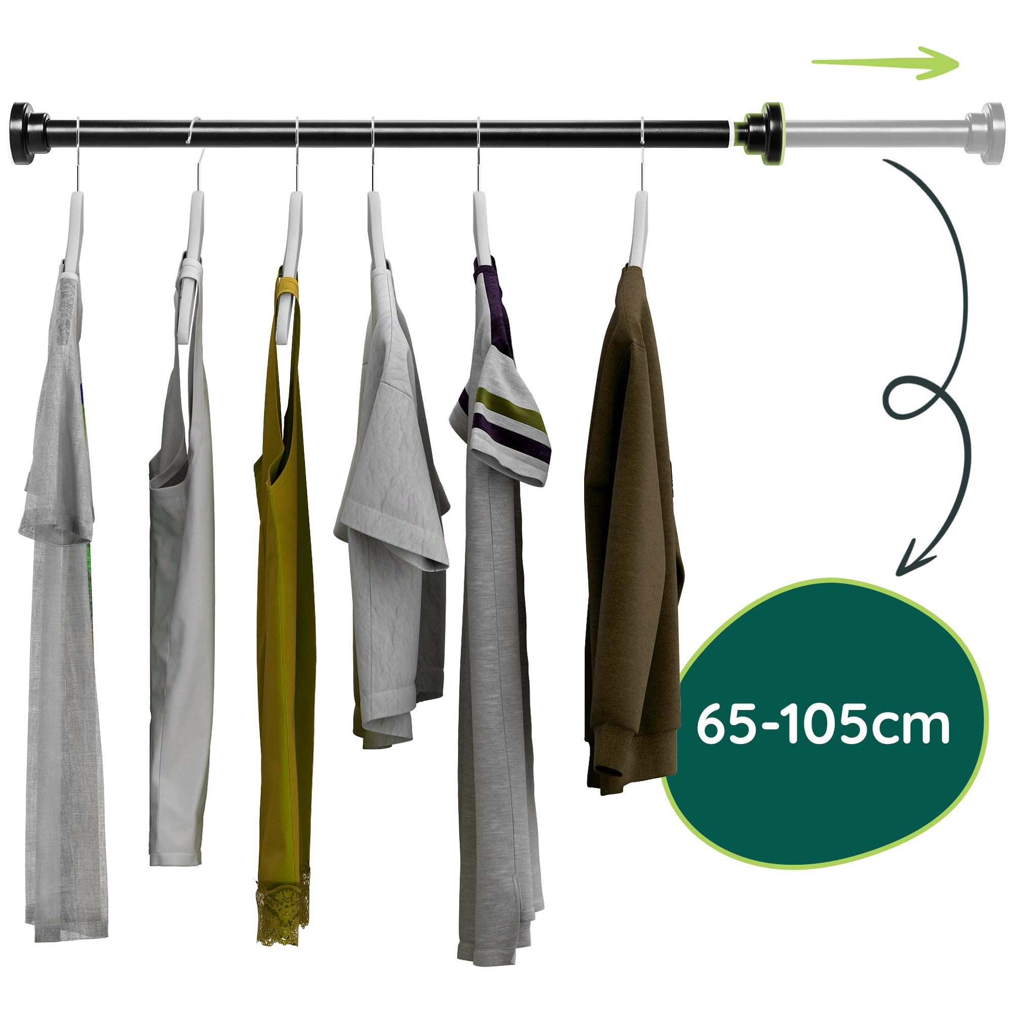 ✓ Makkelijk ophangen zonder boren ✓ Aanpasbaar in formaat: 65 tot 105 cm ✓ Sterke rvs stang in zwarte kleur ✓ Overzichtelijke kledingkast – sneller outfits vinden