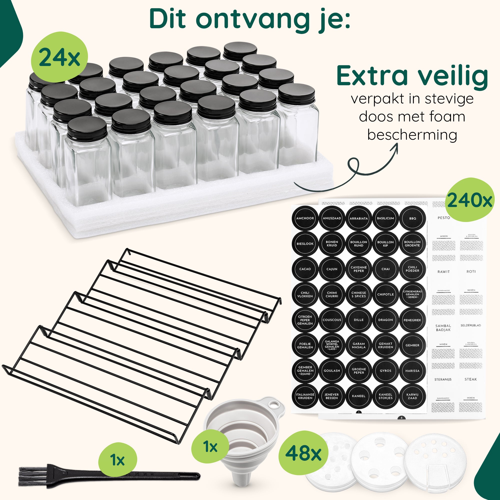 XIVADA Kruidenrek lade met 24 kruidenpotjes - 240 kruidenlabels