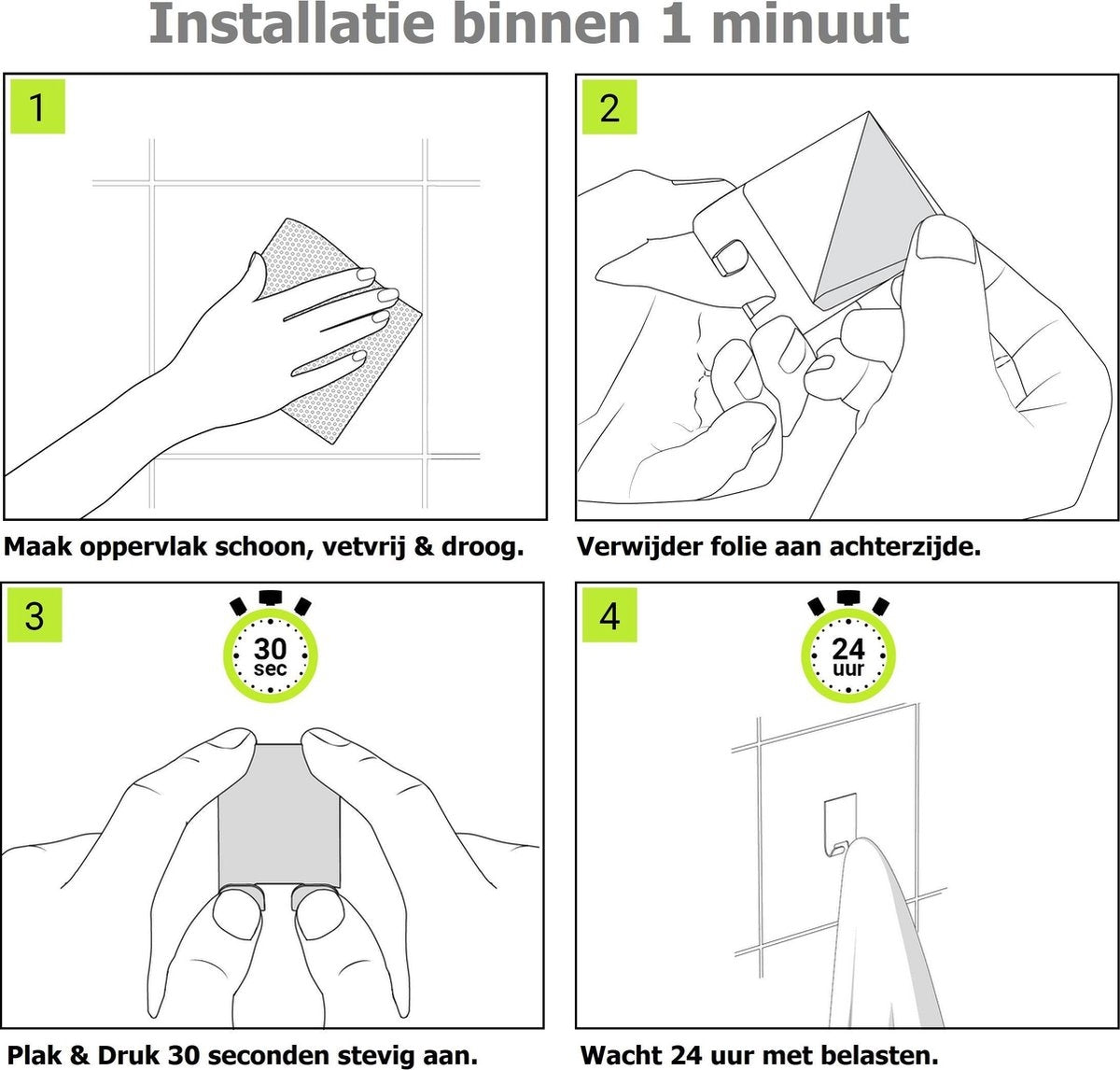 - Makkelijk monteren zonder schade aan muur of tegels.