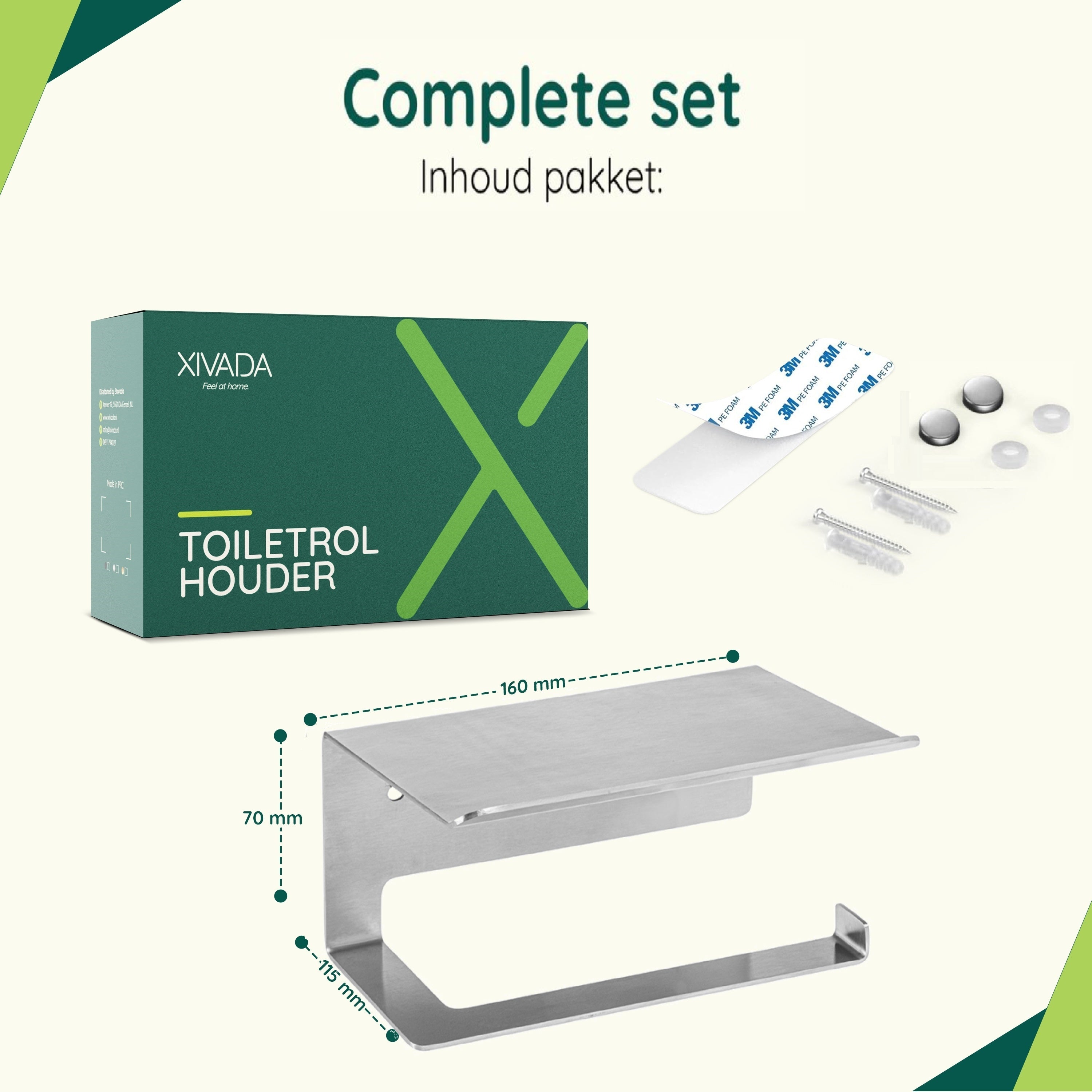 Voordelen: ✓ Handig opbergplankje voor telefoon ✓ Makkelijke montage: plakken of boren ✓ Opstaand randje voorkomt vallende toiletrol