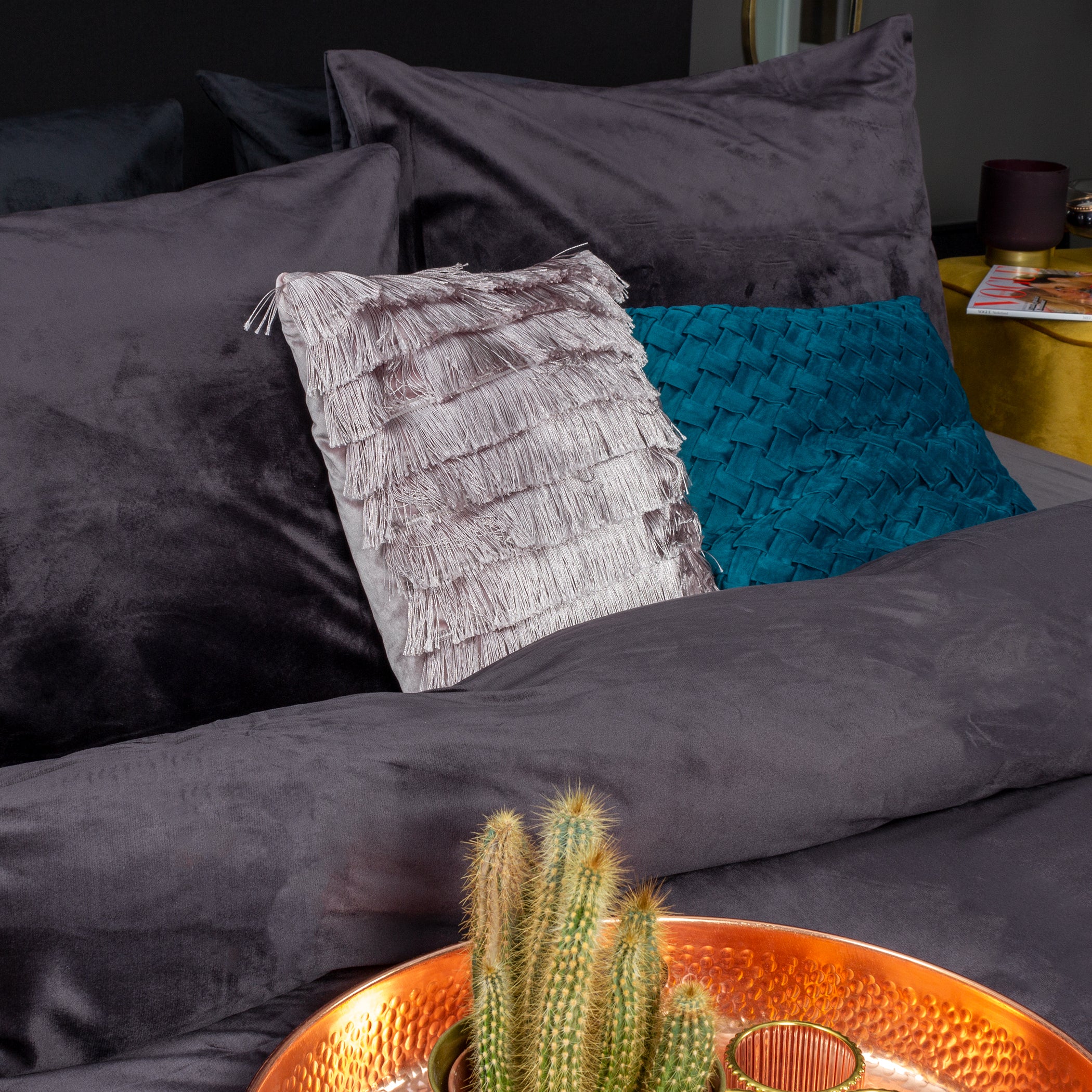 ?Kruip elke avond weer weg onder dit fijne dekbedovertrek van fluweel dat in deze mooie donkere antraciet kleur is uitgevoerd. Deze kleur is namelijk heel bijzonder en verrijkt het decor in je slaapkamer op een originele en unieke manier. Je slaapkamer lijkt er wel een paleisje door.