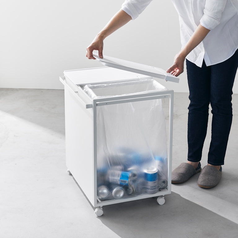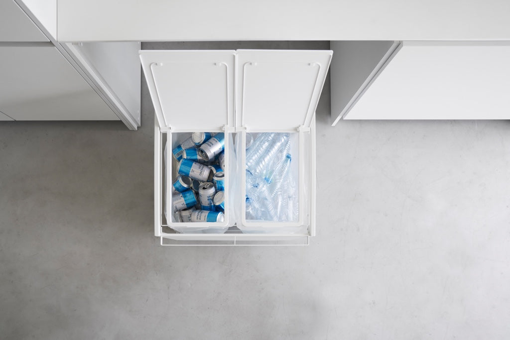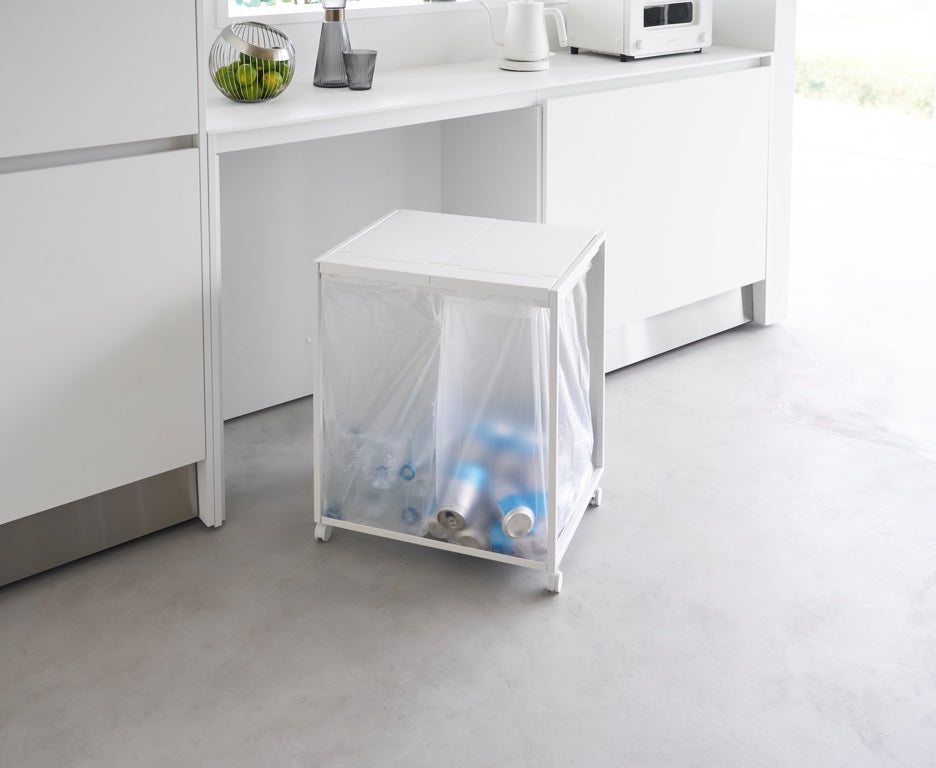 Yamazaki Afvalscheidingsprullenbak met wielen - 2 comp - Tower - Wit