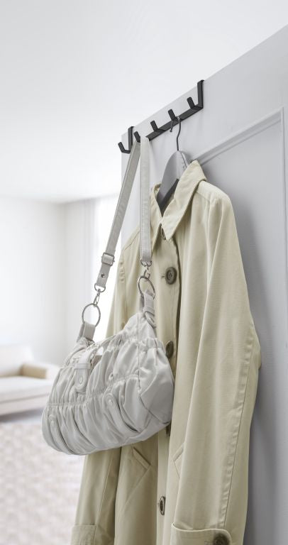 Deze eenvoudige over de deurhaak van Yamazaki is perfect geschikt voor elke kamer en voegt handige ruimte toe voor het ophangen van kleding of accessoires. Gemaakt van staal en ontworpen in Japan.
