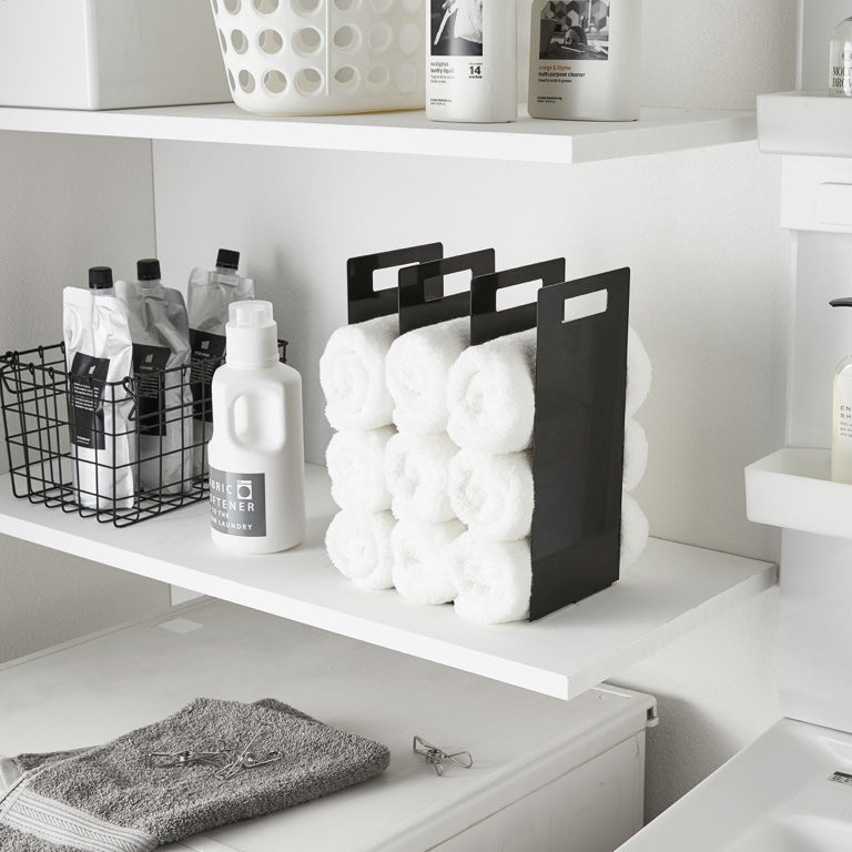 Voor het opbergen van opgerolde handdoeken is deze houder van Yamazaki erg geschikt.