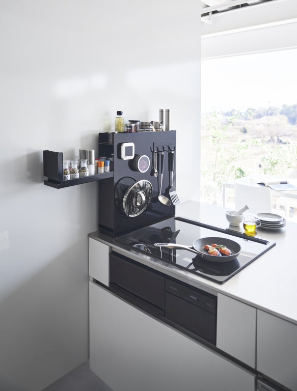 Dit kruidenrek van Yamazaki combineert een strak en gemakkelijk schoon te maken ontwerp met voldoende opslagruimte voor al je kruiden en specerijen.