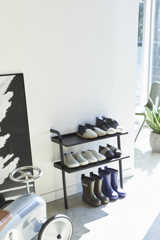Dit kinderschoenenrek van Yamazaki maakt definitief een einde aan rondslingerende schoenen. Dankzij het lichte en praktische ontwerp kun je het rek eenvoudig tegen een muur plaatsen, wat je flexibiliteit en gemak biedt bij het organiseren van het schoeisel van je kleintjes. Met verstelbare planken en gemakkelijk te reinigen oppervlakken is het de perfecte oplossing om allerlei soorten schoenen, inclusief rubberen laarzen, te herbergen. Je kunt ongeveer 9 paar kinderschoenen kwijt op het rek, met een maat tot ongeveer 18 cm. Het Kids Leaning Shoe Rack is niet alleen functioneel, maar voegt ook een vleugje stijl toe aan de kinderkamer of de gang.