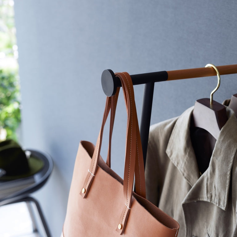 Dit rek van Yamazaki biedt voldoende ruimte voor het ophangen van jassen en andere kledingstukken.
