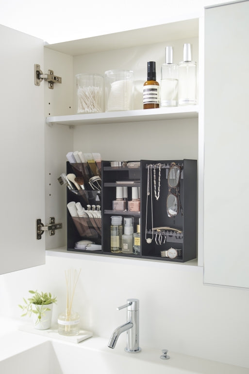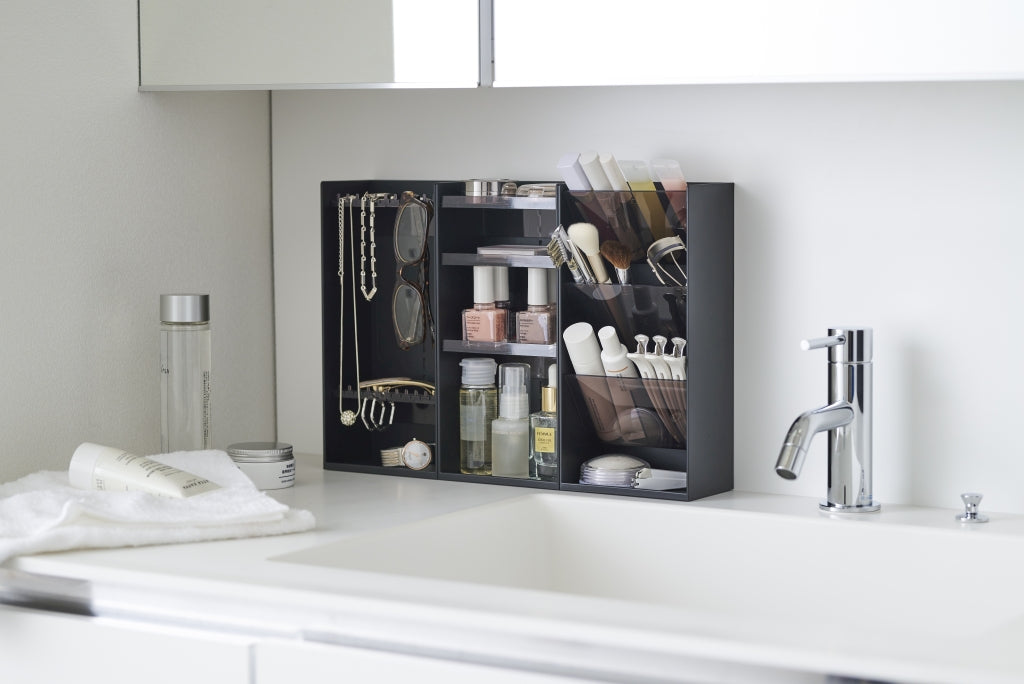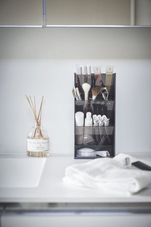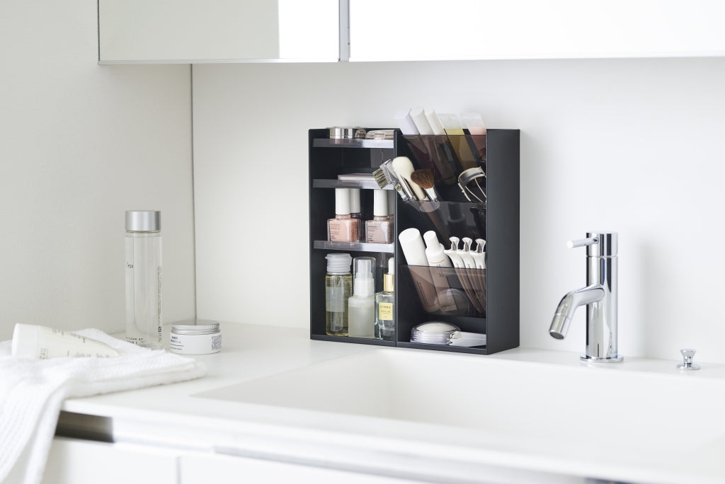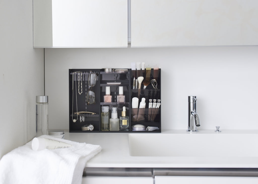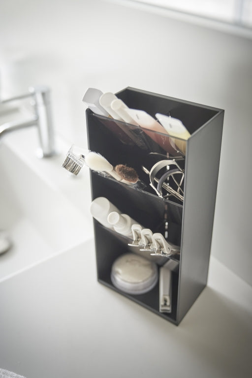 Deze moderne make-up opbergdoos van Yamazaki is een slimme oplossing om je make-up en andere kleine badkamerbenodigdheden netjes georganiseerd en efficiënt opgeborgen te houden.