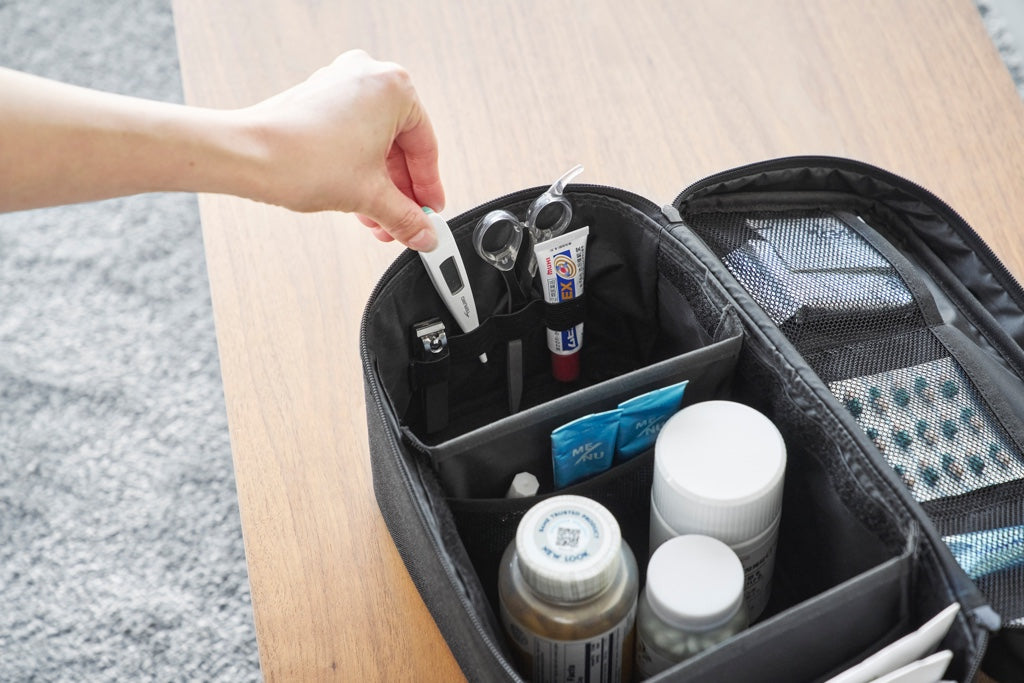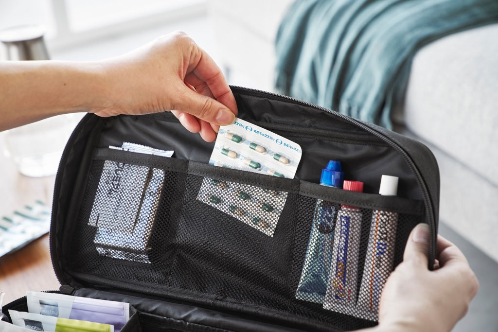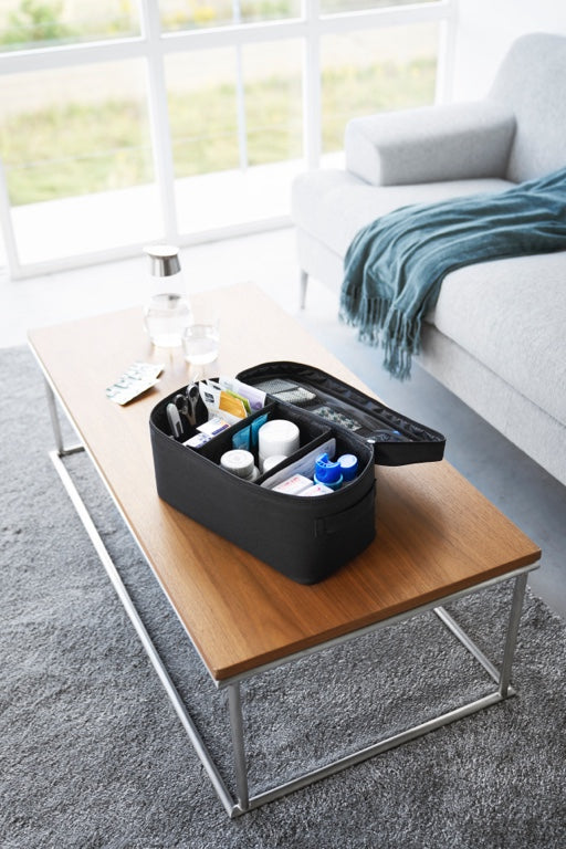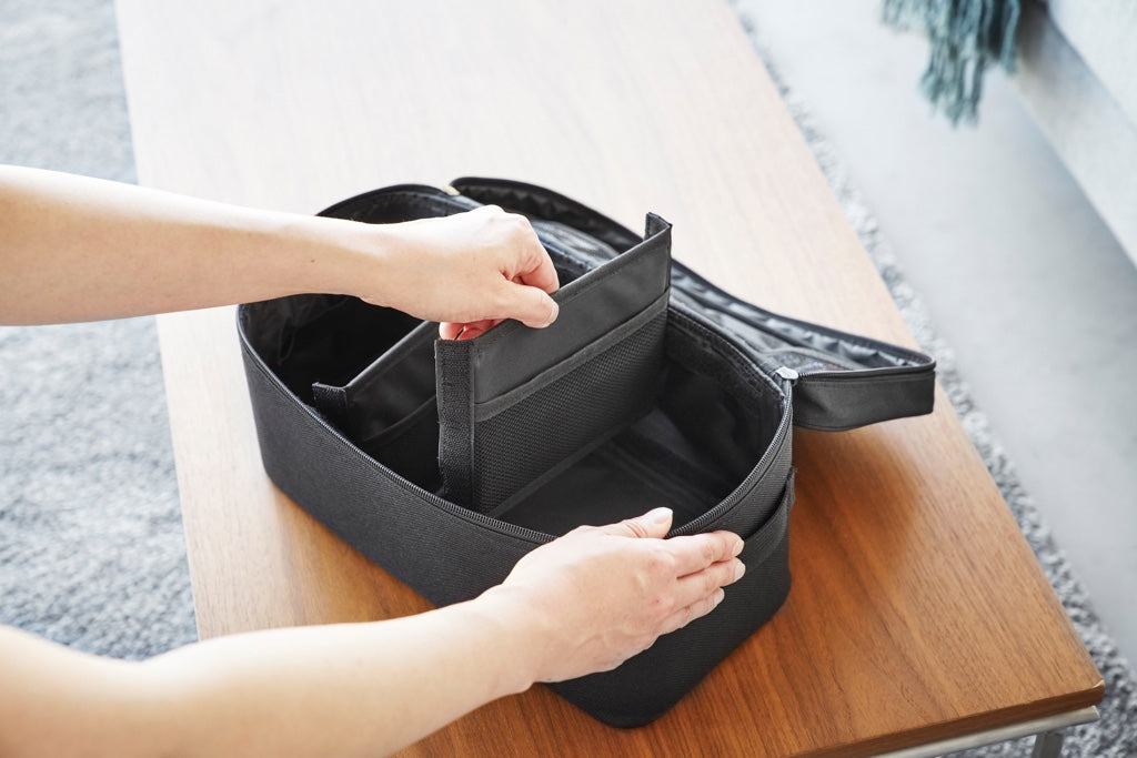 Deze praktische opbergtas van Yamazaki is ideaal om kleine spullen, zoals EHBO- of naaibenodigdheden op te bergen. De tas beschikt over verdelers met praktische gaasvakken die zorgen voor een nette opslag.
