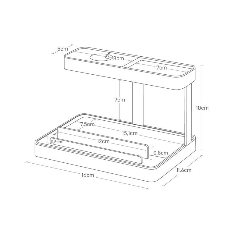 - Bovenste plateau met opstaande randen voor veilige opslag