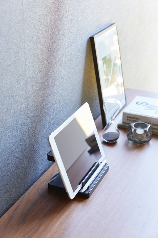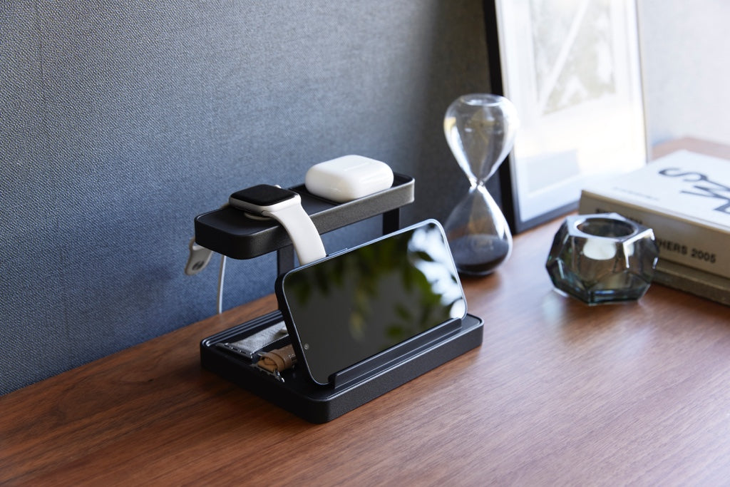 Met deze handige standaard van Yamazaki kun je apparaten zowel opladen als opbergen.