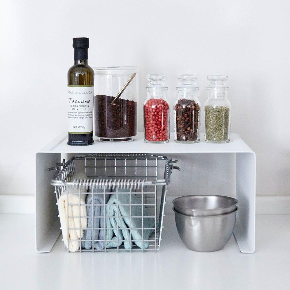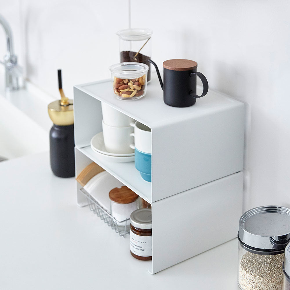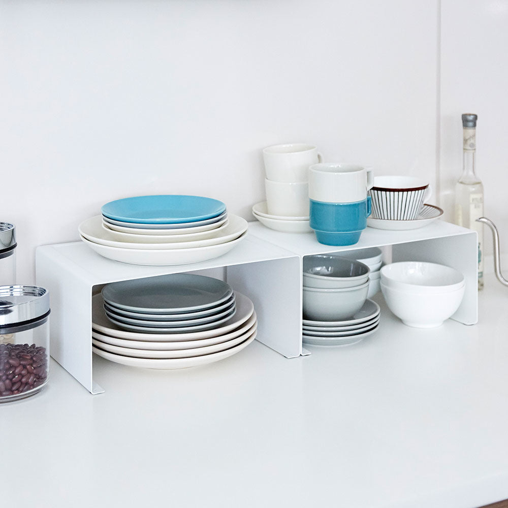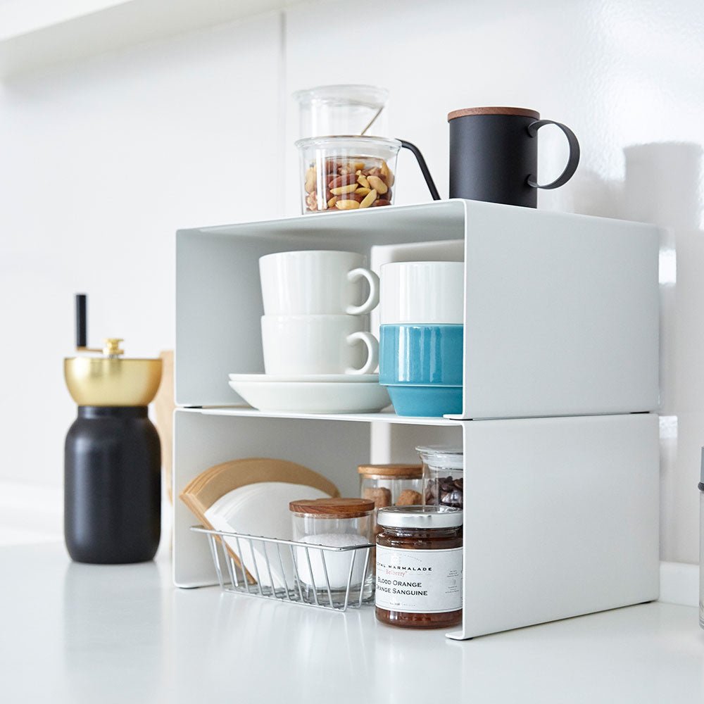 Met dit stijlvolle, stapelbare keukenrek van Yamazaki haal je het meeste uit je keukenruimte. Creëer wat extra opbergruimte door er kleinere borden of kopjes onder te plaatsen en potten, kruiden en andere keukenspullen erop te zetten. Dankzij het eenvoudige en strakke design is het een aanwinst voor iedere keuken.