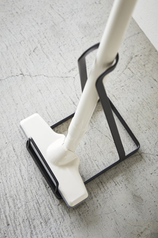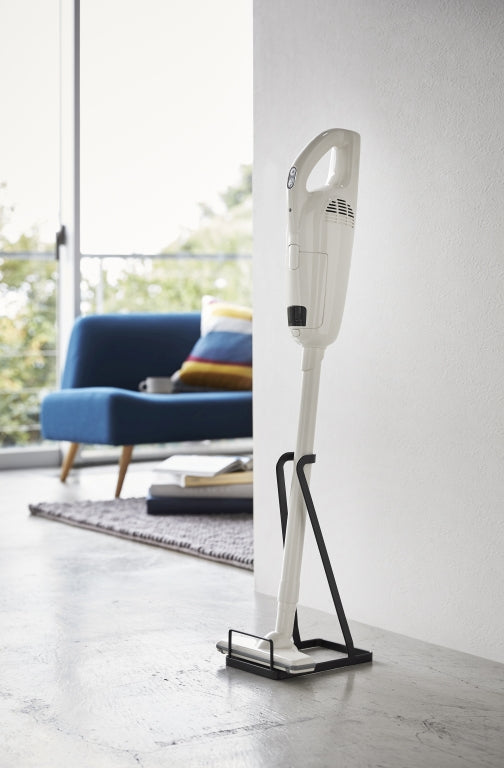 Deze minimalistische stofzuigerstandaard van Yamazaki is de perfecte oplossing voor het opbergen van steelstofzuigers.