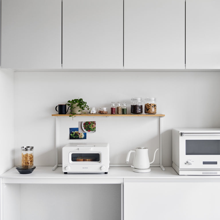 - Creëert een extra opslaglaag boven je aanrecht – nuttig voor kleine keukenapparaten