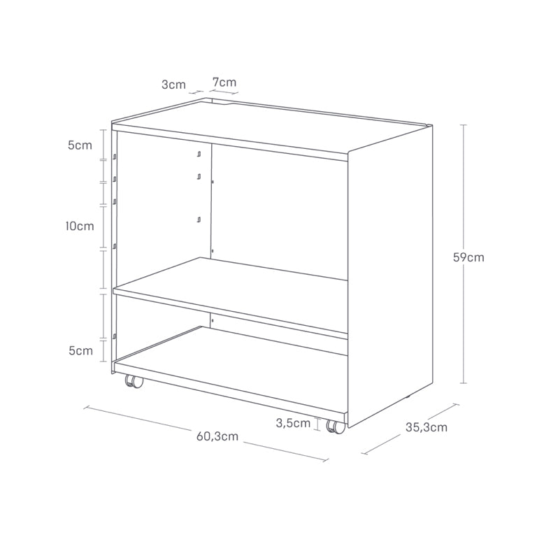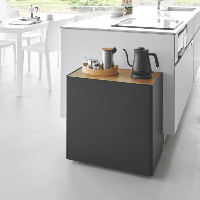 Deze praktische opbergwagen van Yamazaki biedt voldoende ruimte om huishoudelijke spullen op te bergen en je woonruimte netjes te houden. Dankzij de wielen is de wagen eenvoudig te verplaatsen, daarbij zorgt het gesloten zijpaneel voor een opgeruimde uitstraling doordat alles netjes uit het zicht blijft. De wagen heeft twee planken, waarvan de middelste in hoogte verstelbaar is, zodat de opbergruimte aangepast kan worden naar de gewenste hoogte.