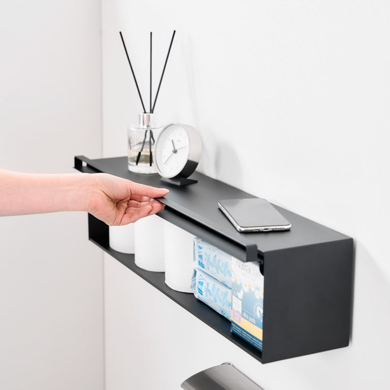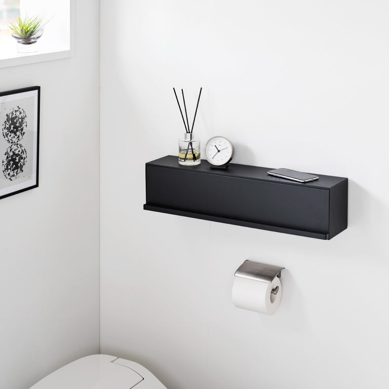 Dit opbergvak van Yamazaki is eenvoudig aan de muur te bevestigen en biedt extra ruimte voor het opbergen van kleine items, zoals badkamerbenodigdheden of andere huishoudelijke spullen. De schuifdeksel verbergt de inhoud uit het zicht, terwijl deze toch gemakkelijk toegankelijk blijft. Dit zorgt voor een nette en opgeruimde uitstraling in iedere ruimte.