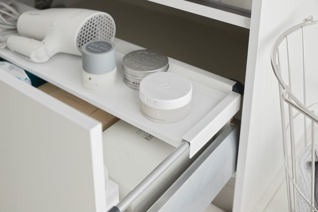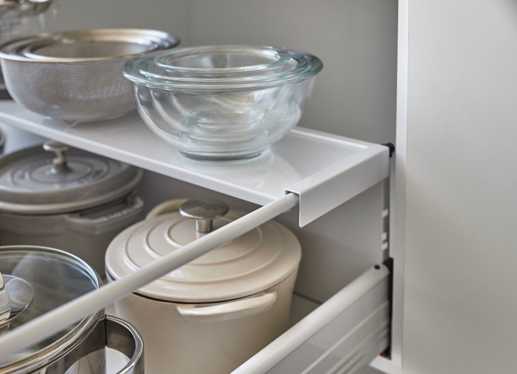- Creëert een tweede laag door over de zijkanten van de lade te haken