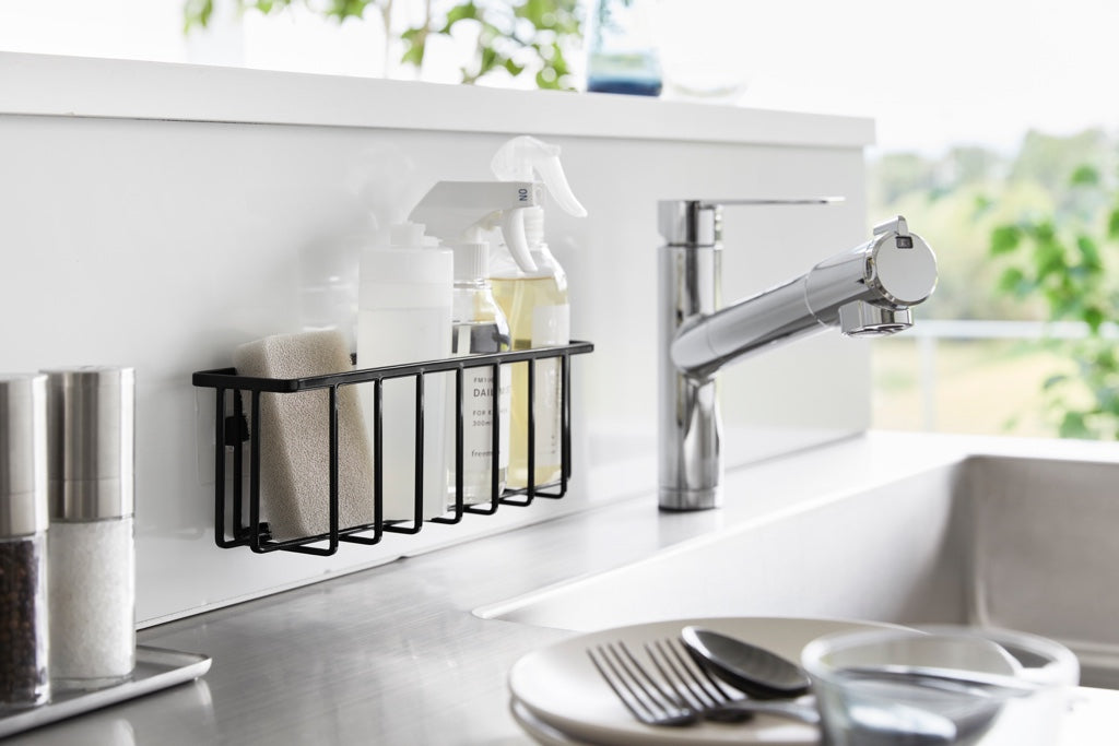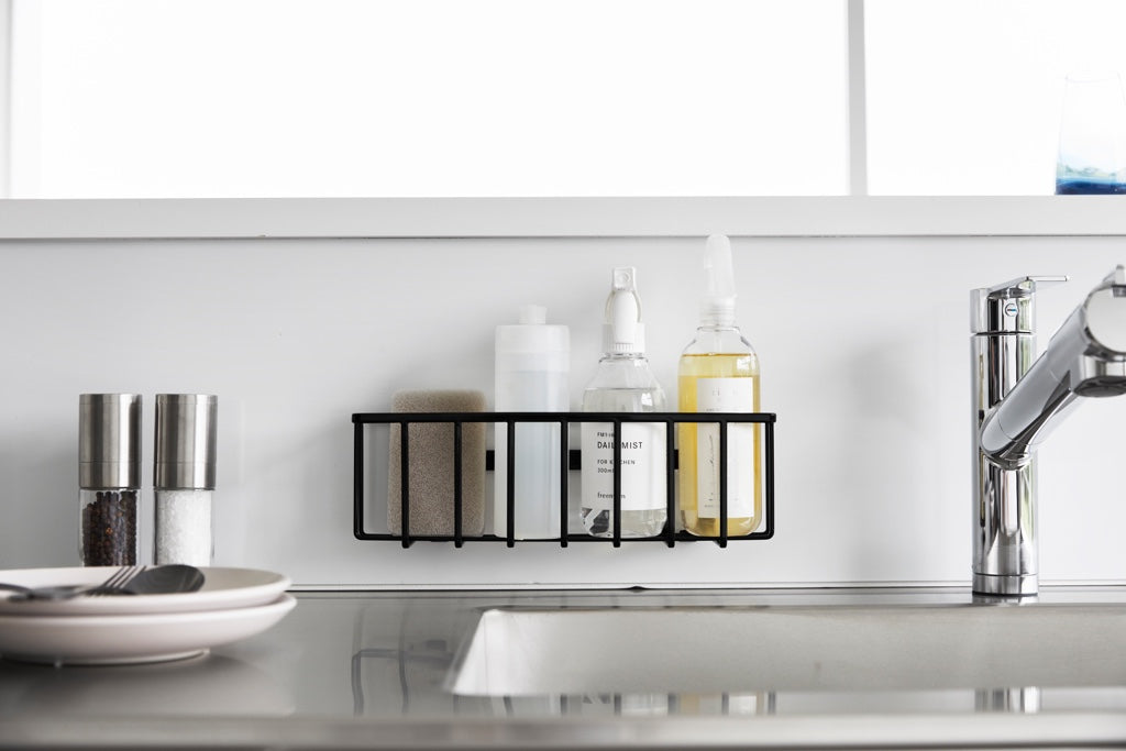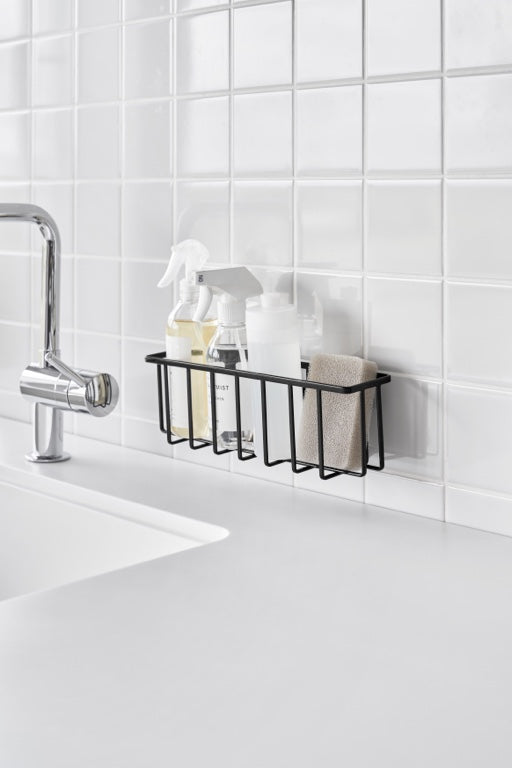 In deze slimme mand van Yamazaki kun je afwasmiddel en sponsjes opbergen, maar het kan ook worden gebruikt in de badkamer om shampoos of douchegel netjes in te organiseren. De mand is eenvoudig te bevestigen in de gootsteen door de film haak en bespaart zo ruimte op het aanrecht. Het installatieproces is eenvoudig: nadat je de muur hebt schoongemaakt kun je de bijgeleverde haak op een vlak muuroppervlak plakken en hier het mandje op vastklikken.