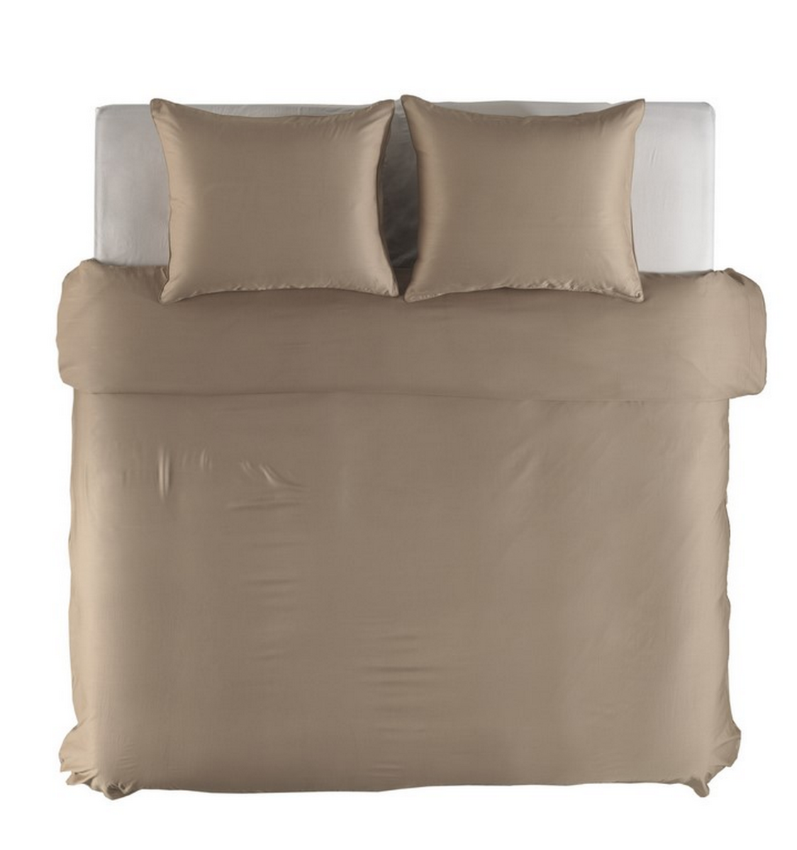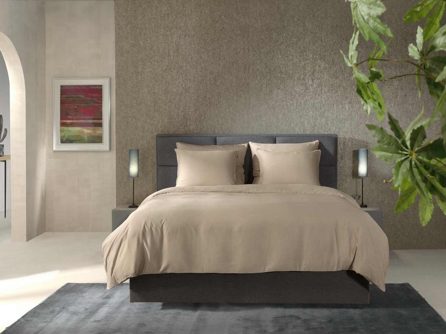 Effen dekbedovertrek Bamboo Desert Sand in de mengkleur bruin geel, heeft een prachtig patroon van subtiele horizontale stiksels. Door de stiksels ontstaat er een patroon dat het overtrek er chique en tegelijkertijd speels uit laat zien. Het overtrek is gemaakt van 100% kwalitatief hoogwaardig bamboe.