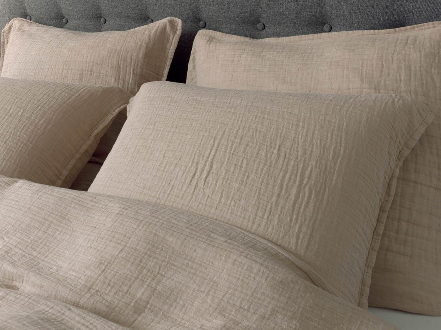 Luxe dekbedovertrek Garza in de kleur Mojave Sand van het luxe designermerk Yellow is tijdloos en chique in een zandkleurige pastel kleur. Gemaakt van 100% hoogwaardig katoen (50% Gauze Cotton 50% Cotton) met een zeer hoog afwerkingsniveau. Het geplooide katoen geeft het dekbedovertrek een prachtige luxe uitstraling. Het dekbedovertrek is afgewerkt met een extra lange instopstrook, wat het ook geschikt maakt voor dikkere matrassen. Dit zacht fijn geweven katoenen dekbedovertrek is temperatuurregulerend en vochtabsorberend. Door deze fijne eigenschappen ervaar je met dit overtrek ultiem slaapcomfort! Het materiaal is sterk en goed ademend. Voorzien van een dubbel doorlopende instopstrook. Wordt geleverd met bijpassende kussensloop. Verkrijgbaar in verschillende kleuren en afmetingen, hierdoor ook geschikt voor extra lange dekbedden.