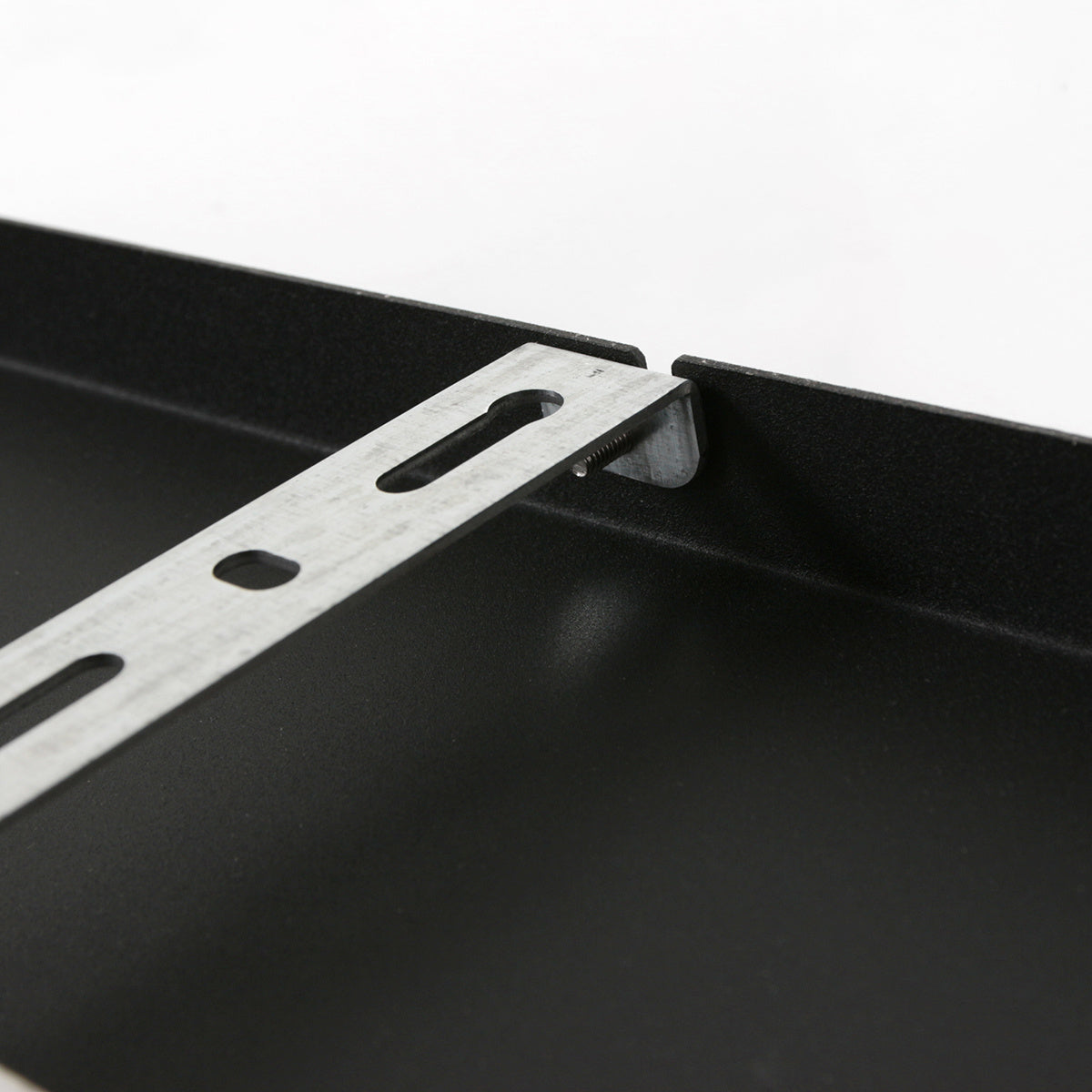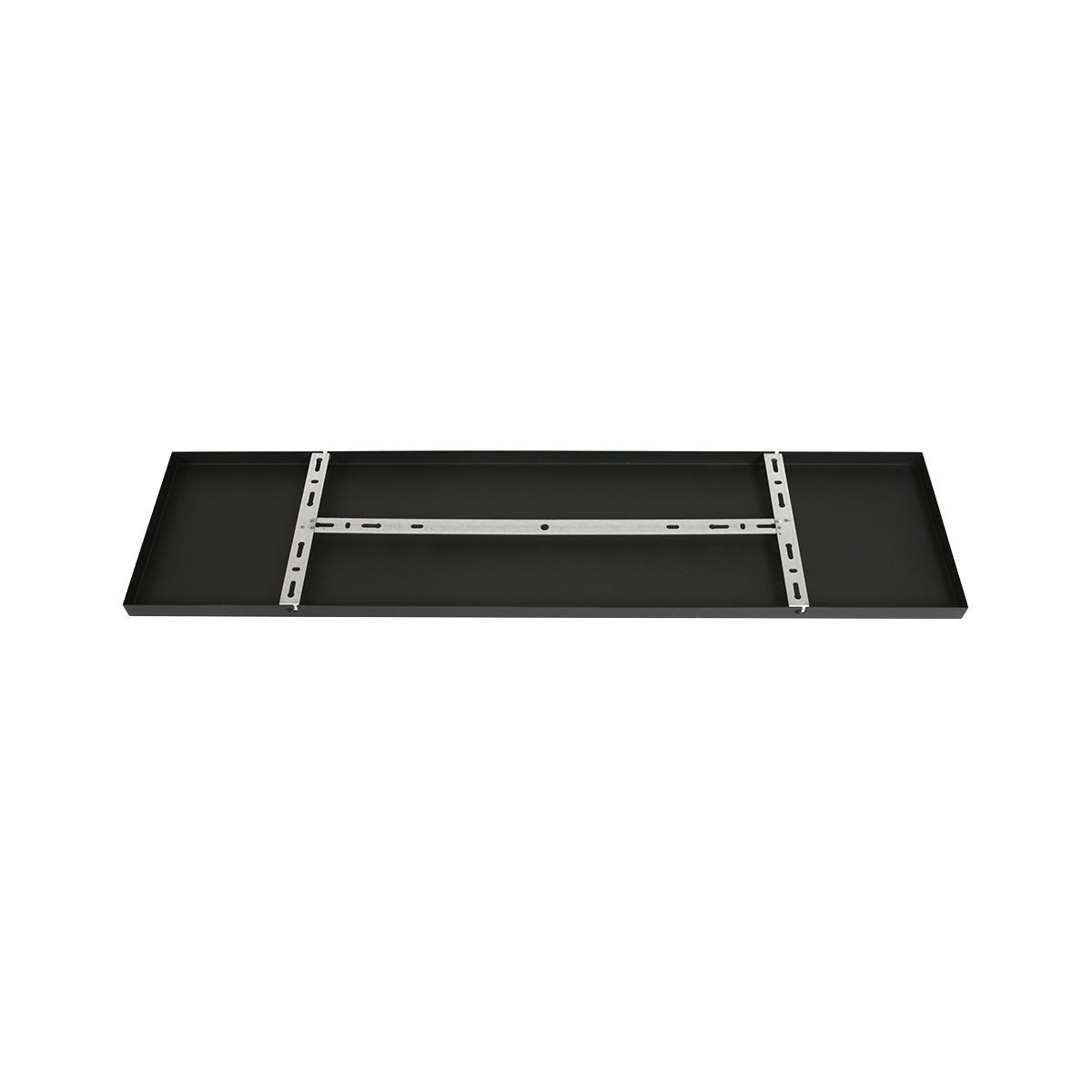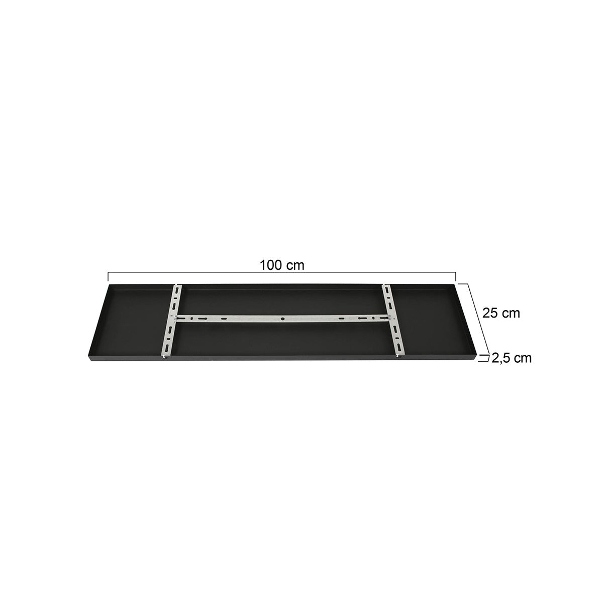 Er worden geen trekontlasters meegeleverd (dopjes met draadeind en moer om het snoer mee vast te zetten), deze zijn wel apart mee te bestellen. Ook wordt deze plaat geleverd zonder snoer. Deze balk is 100 cm lang en 25 cm breed, de hoogte is 2,5 cm. Kleur: Mat zwart.