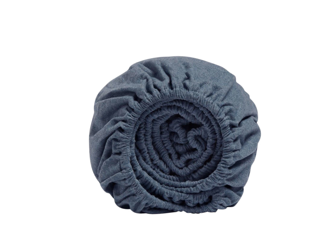 Yumeko hoeslaken velvet flanel denim blue 180x200x30