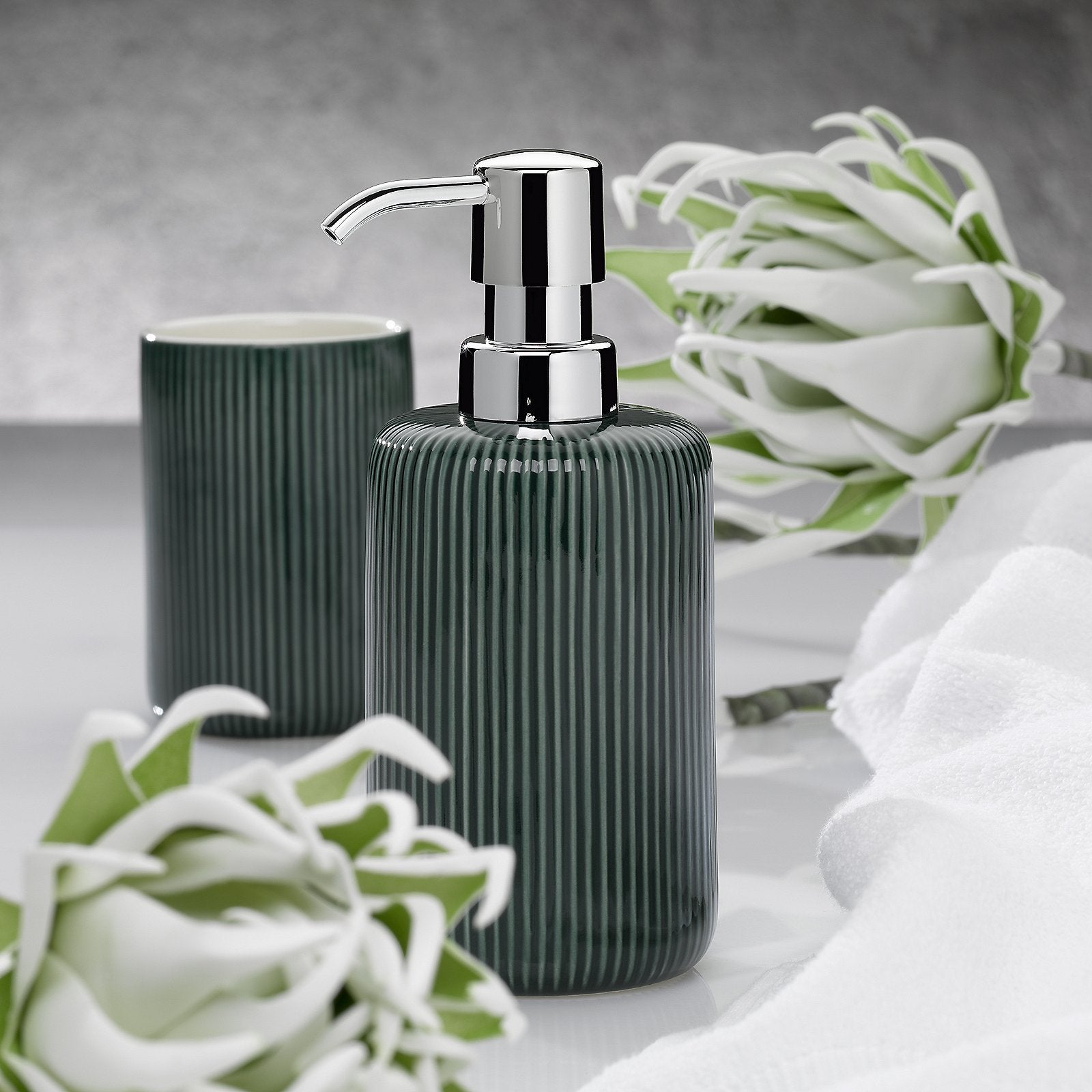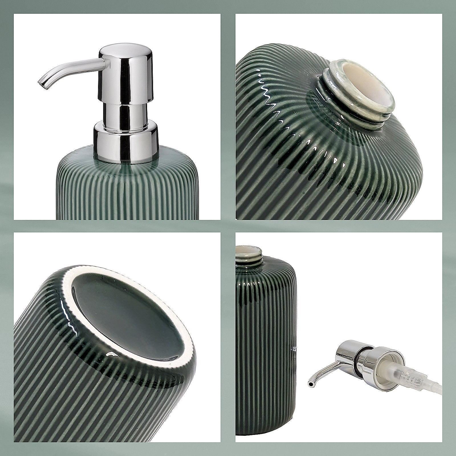 De Ava zeepdispenser van Kela is gemaakt van keramiek en heeft een mooi ribbel patroon. De pomp is gemaakt van verchroomd kunststof waardoor hij roestvrij is. Hij is voorzien van een speciaal mechanisme wat druppelen tegen gaat. Draai hem eenvoudig los om hem bij te kunnen vullen. Hij is 17,5 cm hoog en heeft een diameter van 7,5 cm. Daarnaast heeft hij een inhoud van 350 ml. Leuk om te combineren met andere items uit dezelfde serie.