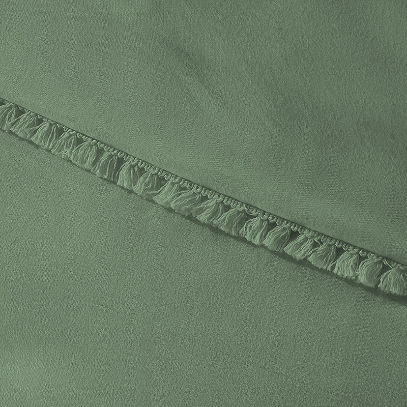 Op zoek naar een effen dekbedovertrek voor een mooi prijsje? Zoek dan niet verder en bekijk deze mooie Zensation Dekbedovertrek Ball Fringe Green. Het dekbedovertrek straalt rust en sfeer uit in de slaapkamer. Om het opgemaakte bed helemaal compleet te maken kan je dit overtrek makkelijk combineren met een mooi plaid of prachtige bijpassende sierkussens. Leuk detail: het dekbedovertrek is mooi afgewerkt met een bies van schattige kwastjes.