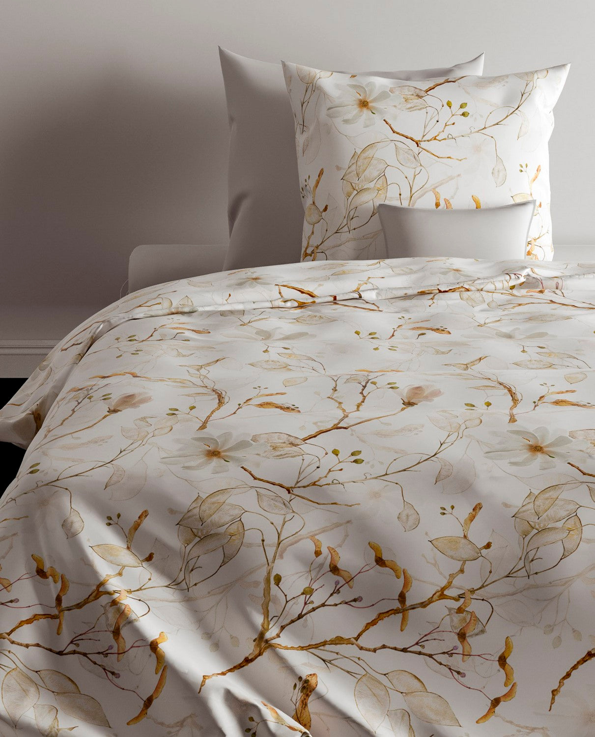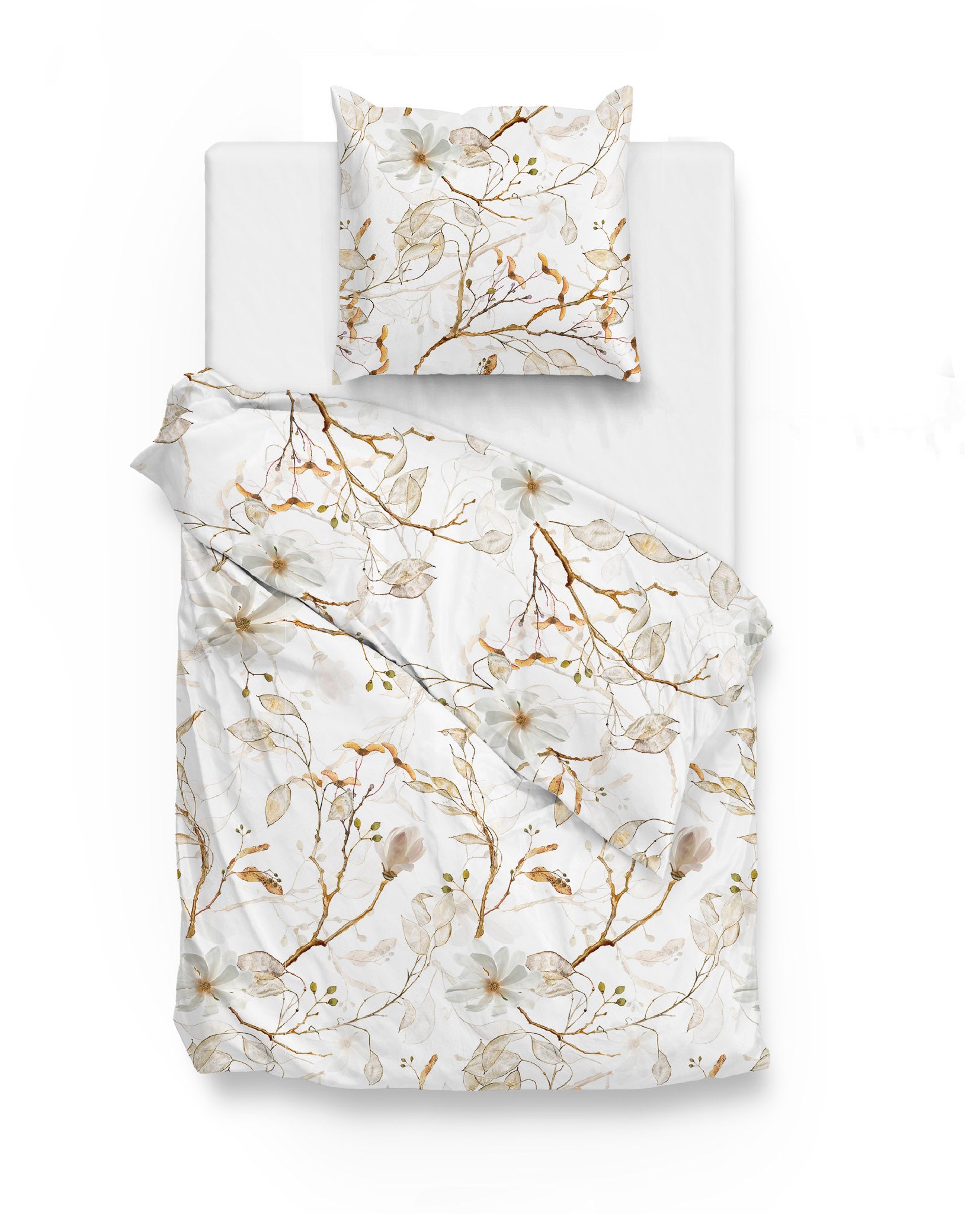 Dekbedovertrek Zusa heeft een sierlijk en rustgevend dessin. Op het witte overtrek staan elegante witte bloemen en bruine takjes afgebeeld. Gemaakt van 100% hoogwaardig katoen-flanel. Flanel past zich snel aan je lichaamstemperatuur aan. Het houdt de warmte goed vast en is daarom ideaal voor de koude wintermaanden. Ook is het materiaal zacht en ademend. Voorzien van een dubbel doorlopende instopstrook. Hierdoor ook geschikt voor extra lange dekbedden.