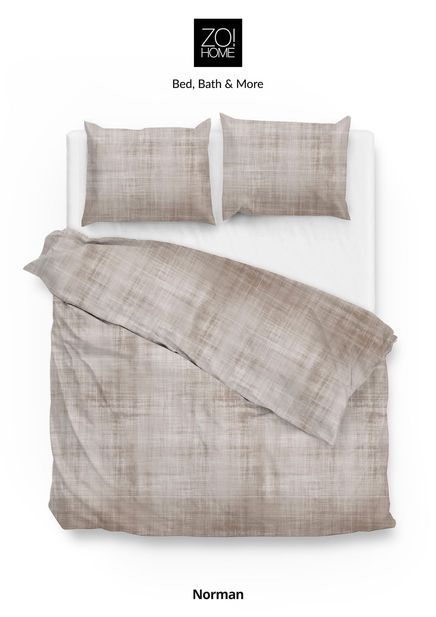 Dekbedovertrek Norman is bedrukt met een prachtige linnenlook in subtiele bruintinten. Het dekbedovertrek is vervaardigd van 100% zacht katoen, heeft een extra lange instopstrook en is verkrijgbaar in verschillende maten.