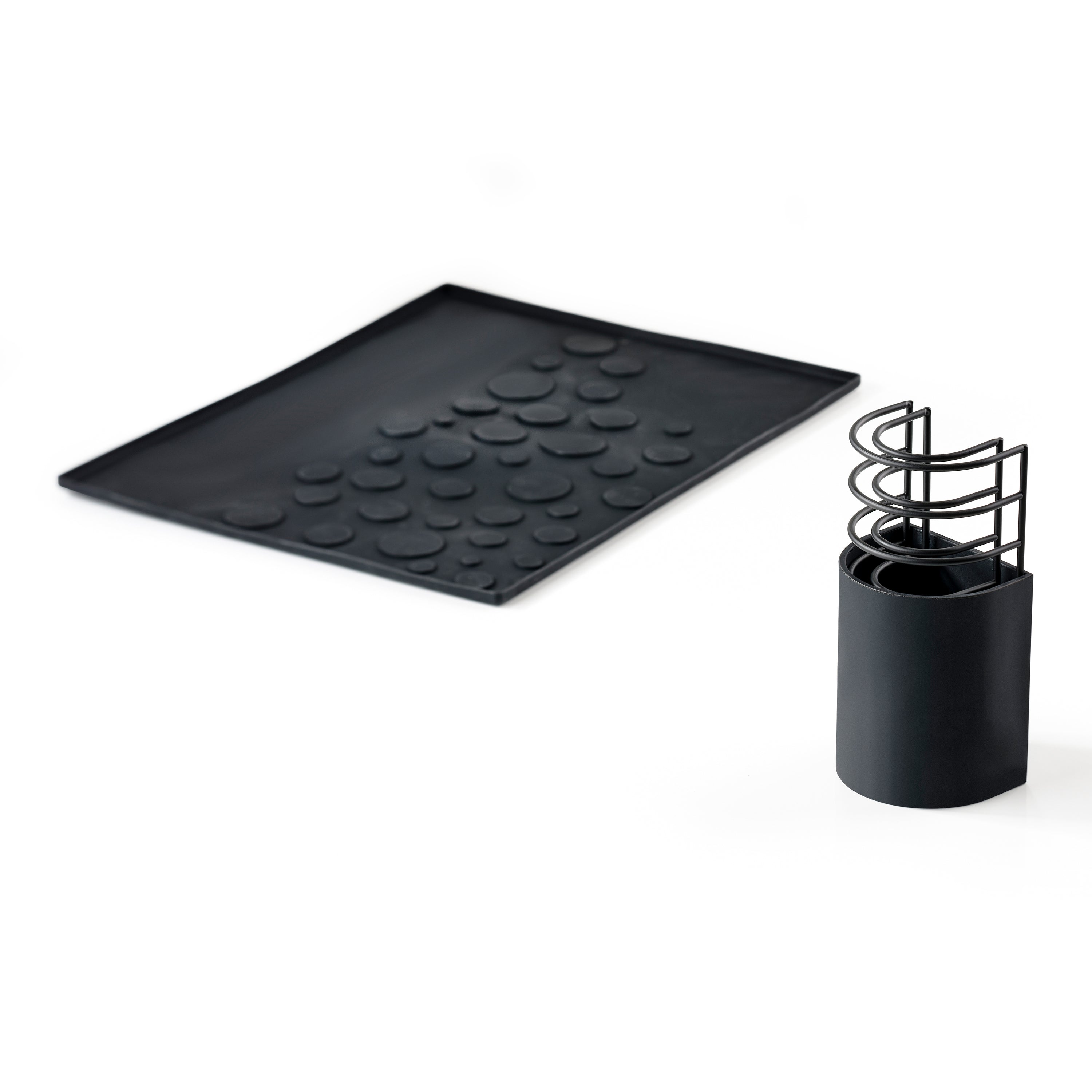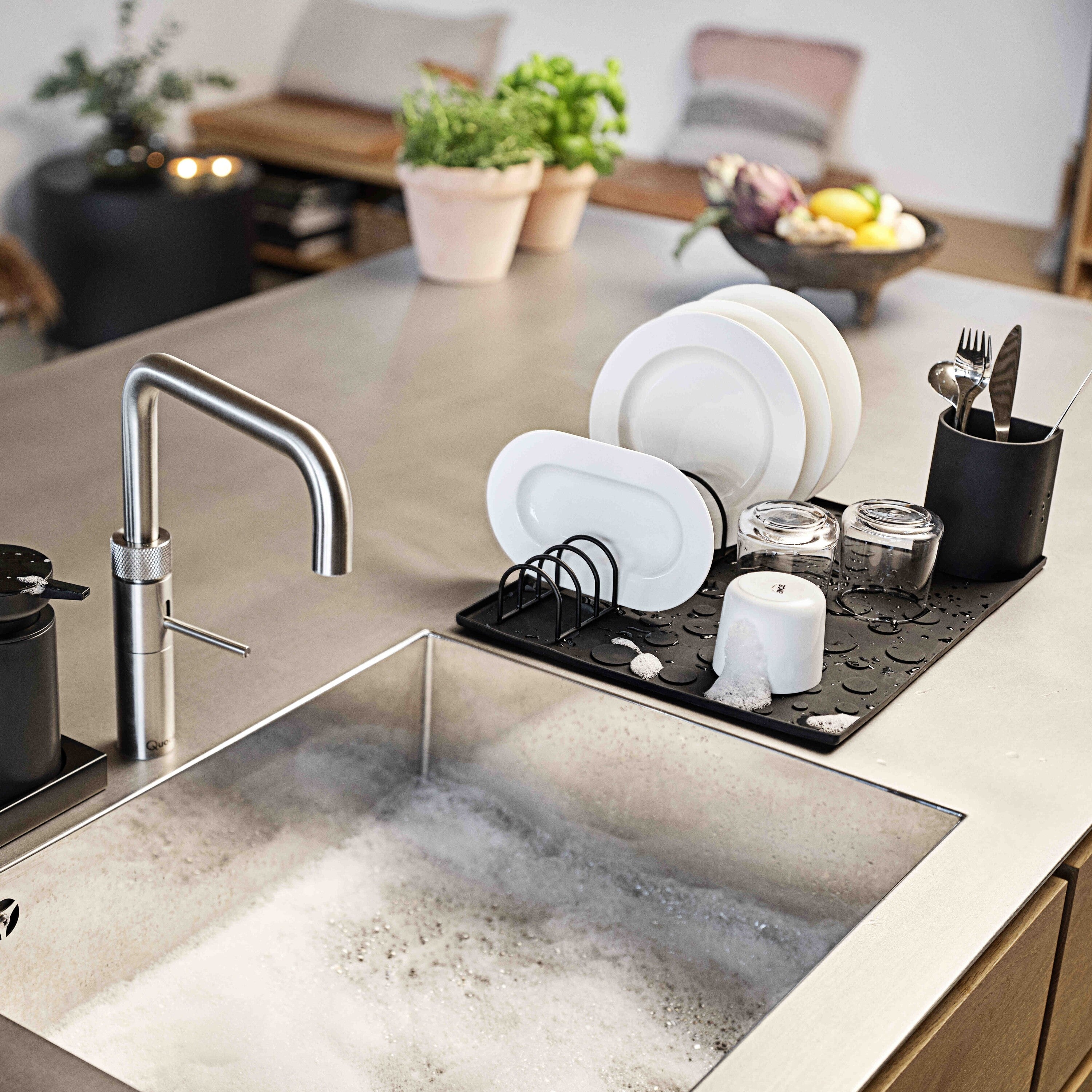 Zet de vaat op een georganiseerde manier weg in dit Zone Denmark DIISH afdruiprek. Het heeft een strak ontwerp en neemt daardoor niet veel ruimte in beslag. Het rek wordt geleverd met een siliconendienblad, twee bordenrekken en een bestekhouder.