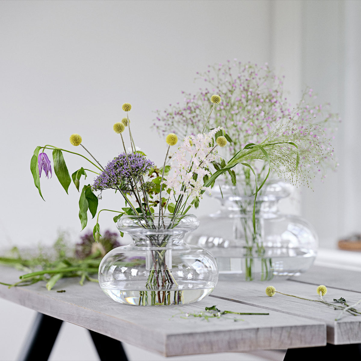 Wat haar extra bijzonder maakt? Je kunt het bovenste deel eraf halen én omdraaien om haar precies aan te passen aan jouw stijl en bloemen. Met het bovenste deel erop heeft de vaas een smalle opening, perfect voor een subtiel boeket of een paar sierlijke takken. Haal je het eraf, dan ontstaat er juist een ruime opening waarin een grote, weelderige bos bloemen helemaal tot zijn recht komt. En wil je een extra speels effect? Draai het bovenste deel om voor een boeket met lange stelen. Ideaal voor alle soorten bloemen dus! Deze ronde, glazen bolvaas is niet alleen stijlvol en veelzijdig, maar ook verkrijgbaar in drie formaten, zodat je kunt mixen en matchen voor een speelse look in huis!