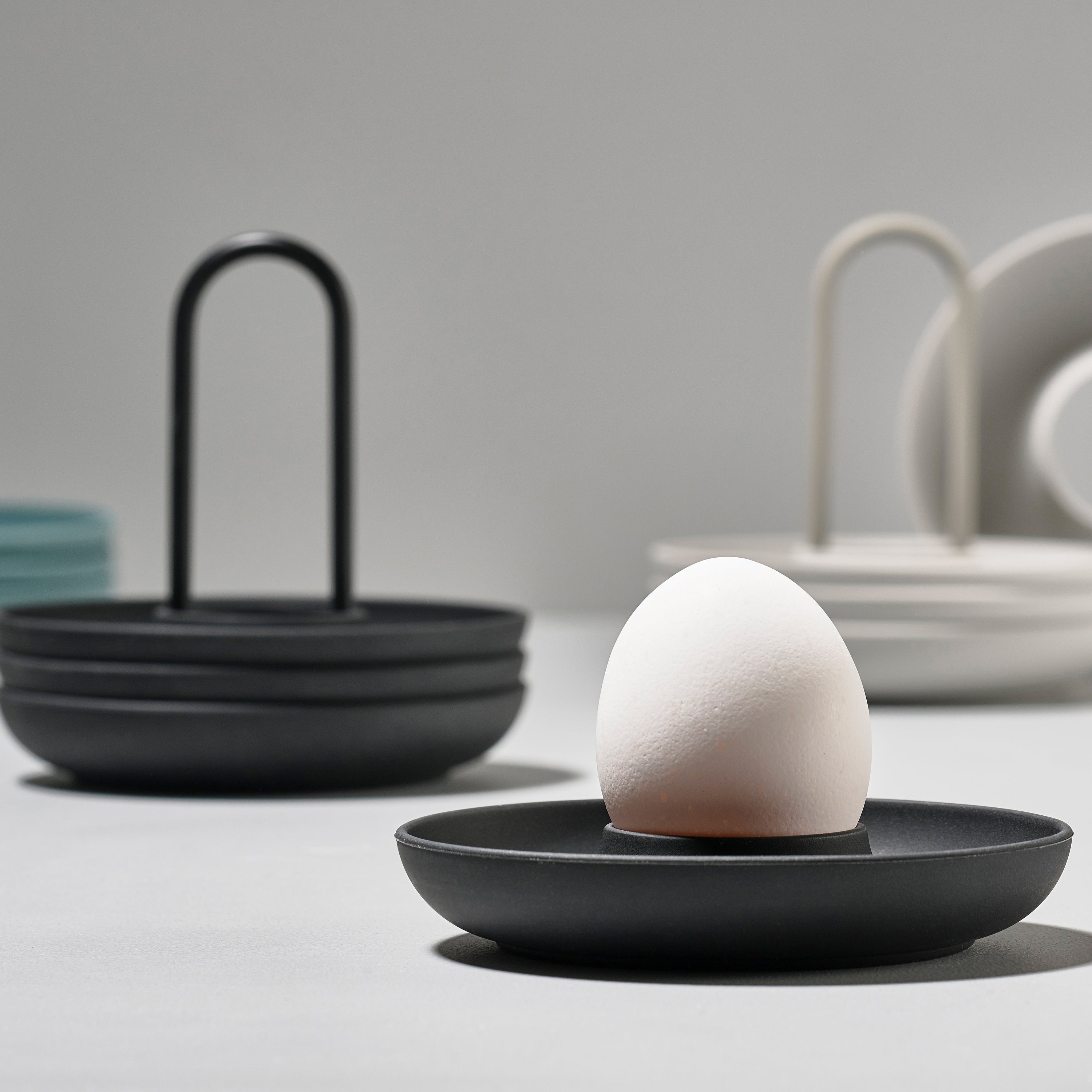 Ontbijten, lunchen en brunchen in stijl doe je met de SIngles eierdop van Zonde Denmark. De set bestaat uit een houder met vier eierdoppen. Door het ronde design met opstaande randen, vangt de eierdop overtollig zout en eierschalen op.