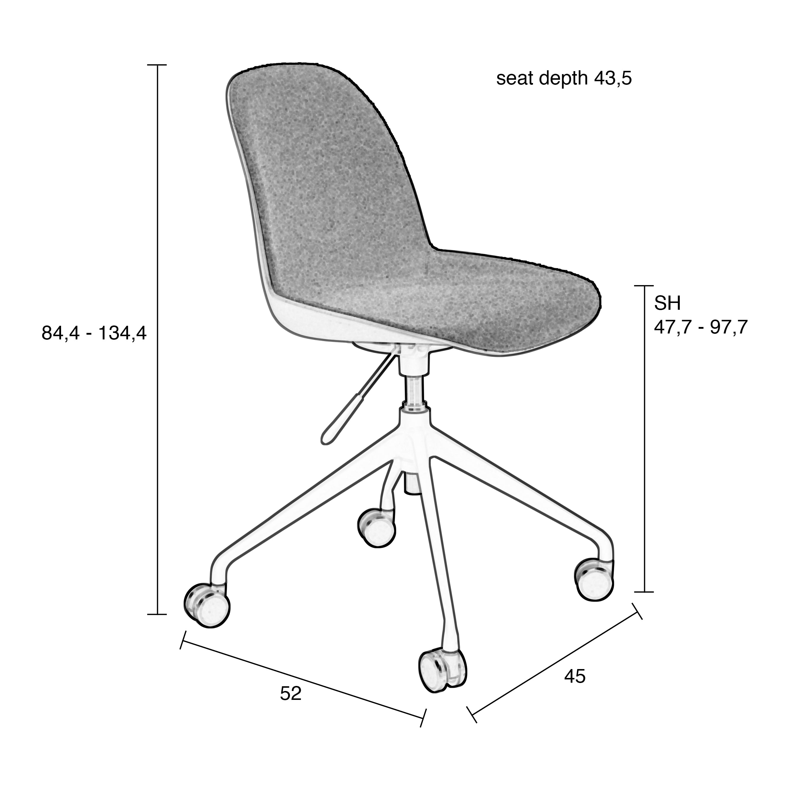 De hoogte van de zitting, gemeten vanaf de vloer. De ideale zithoogte bevindt zich tussen de 40 en 46 cm. Je zit het lekkerst met een ruimte van ongeveer 20 cm, tussen de stoelzitting en de onderkant van het tafelblad.