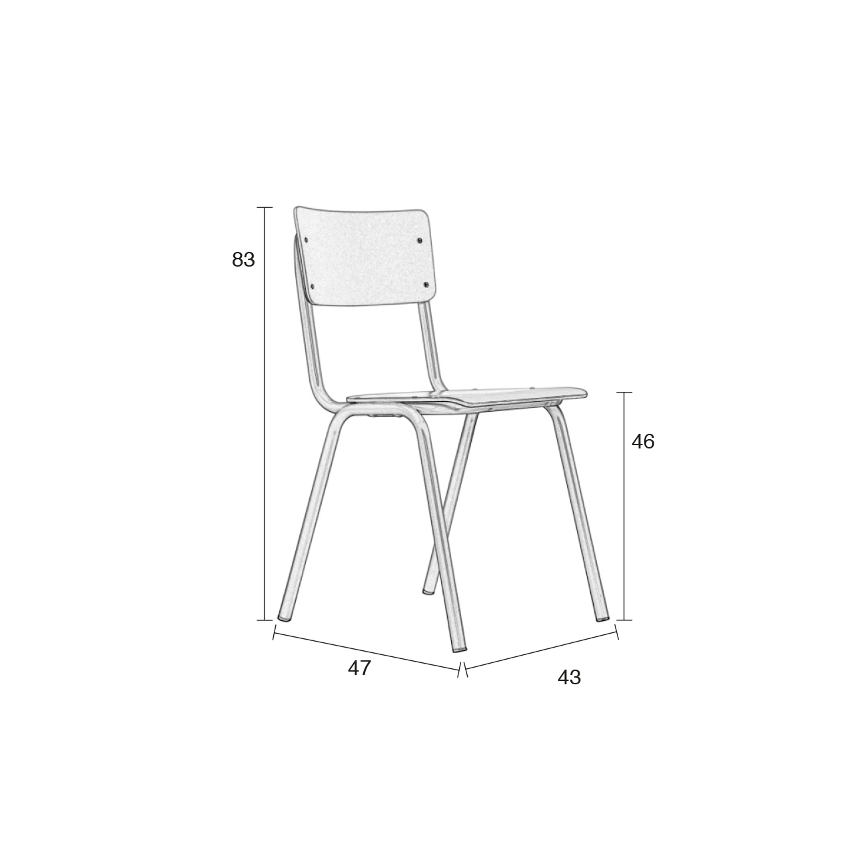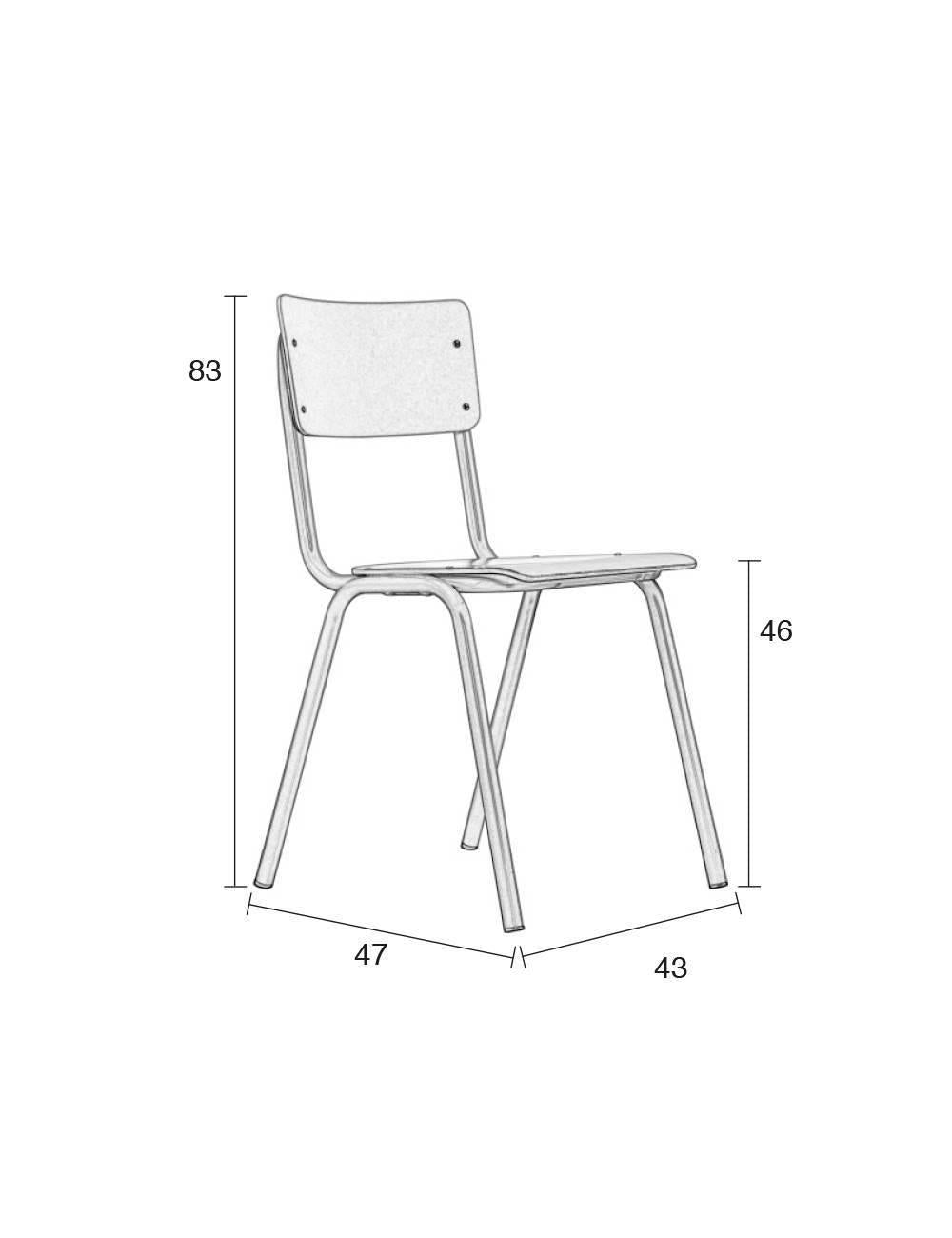 - De zitting en rug van deze stoel zijn van multiplex en afgewerkt met een harde HPL-toplaag. Dat maakt de stoel bestand tegen een stootje.