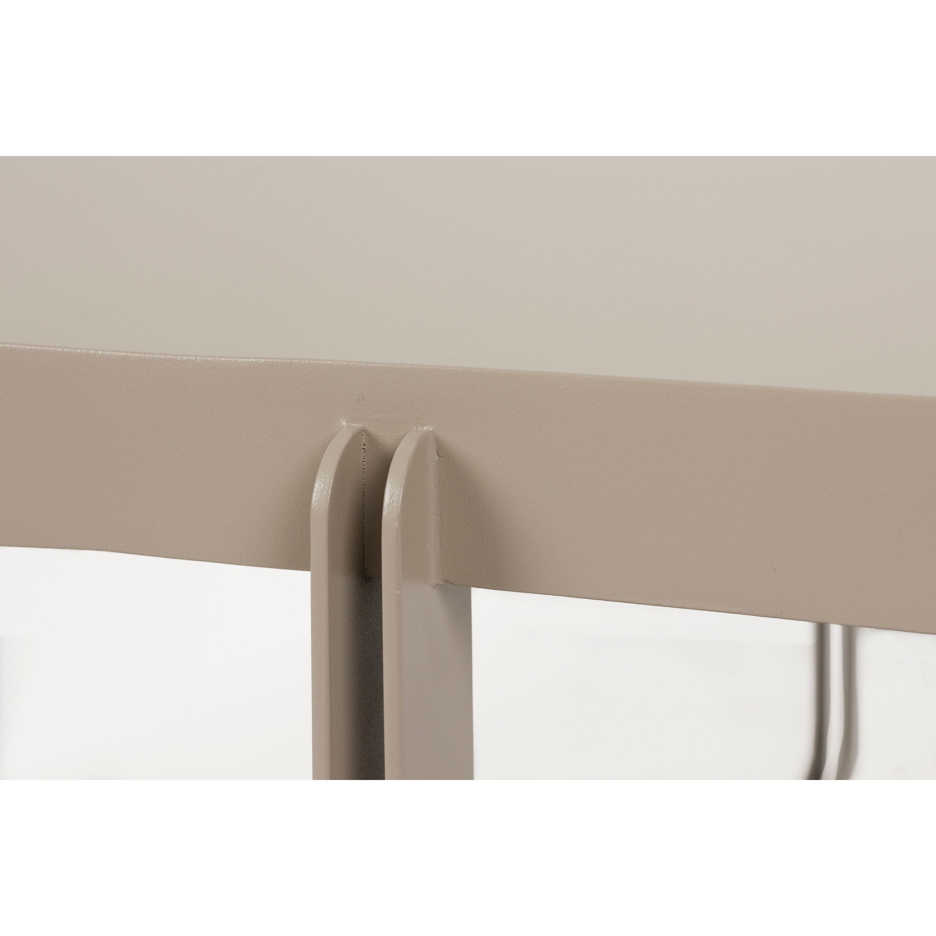 - Heeft een tafelblad van gelakt MDF en metalen frame met matte poedercoating