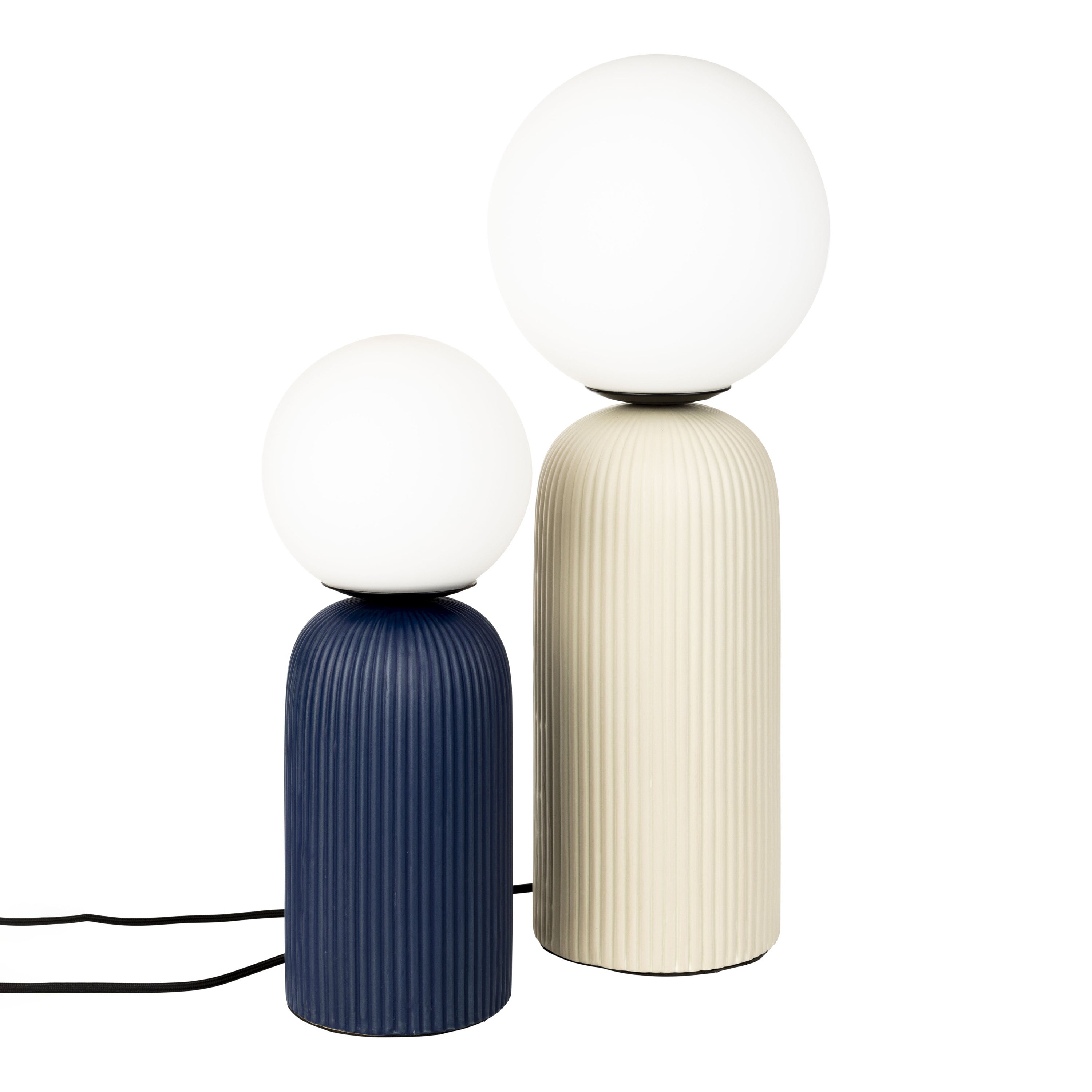 Deze tafellamp heeft een basis van keramiek, een glazen lamp en een zwarte, textiel kabel van 160 centimeter lang. De benodigde lichtbron voor deze tafellamp wordt niet meegeleverd. Voor deze tafellamp heb je een lichtbron met een E27 fitting van maximaal 40 Watt nodig of 4 Watt in het geval van een LED lamp.