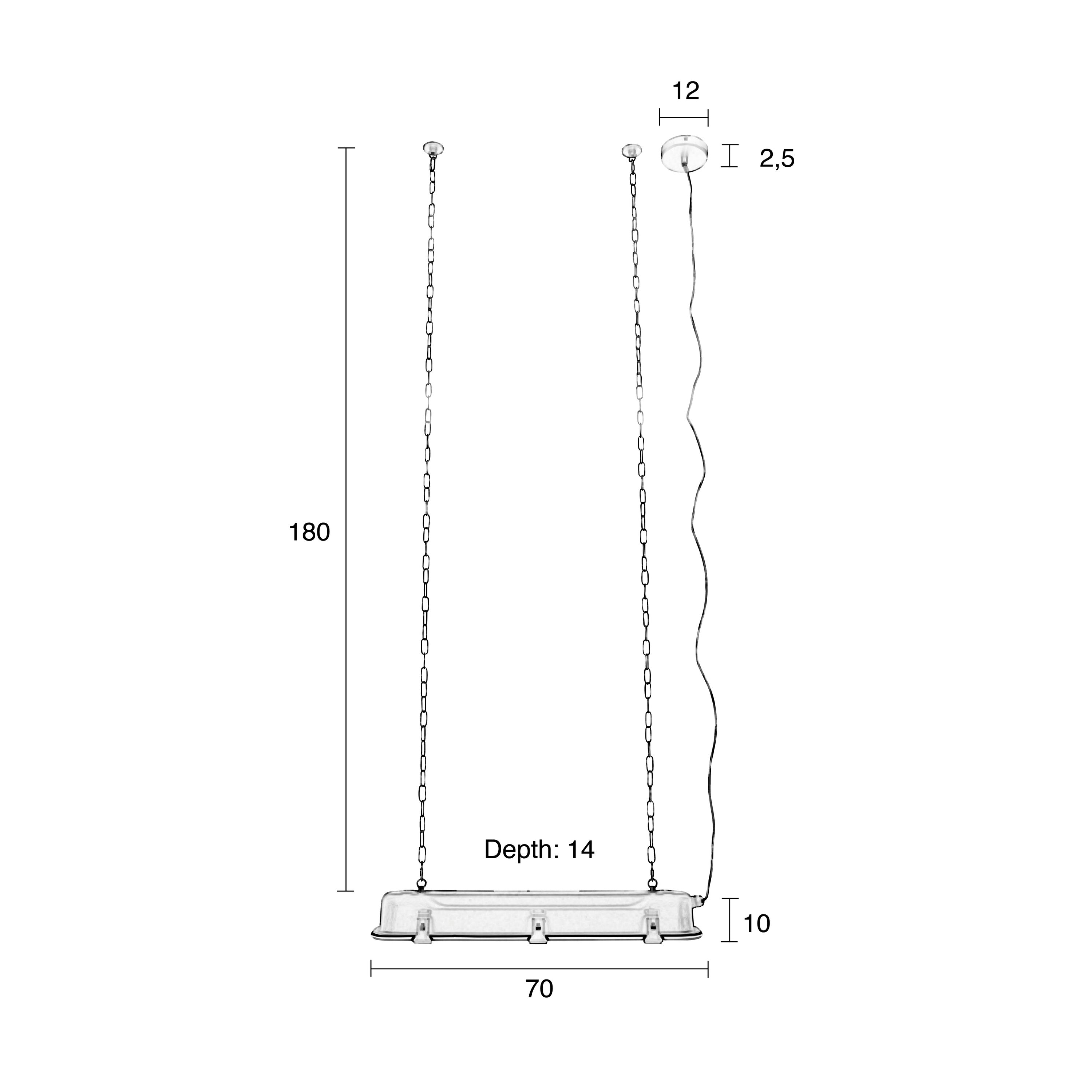 - Industriële lamp van H 10 x B 70 x D 14 cm