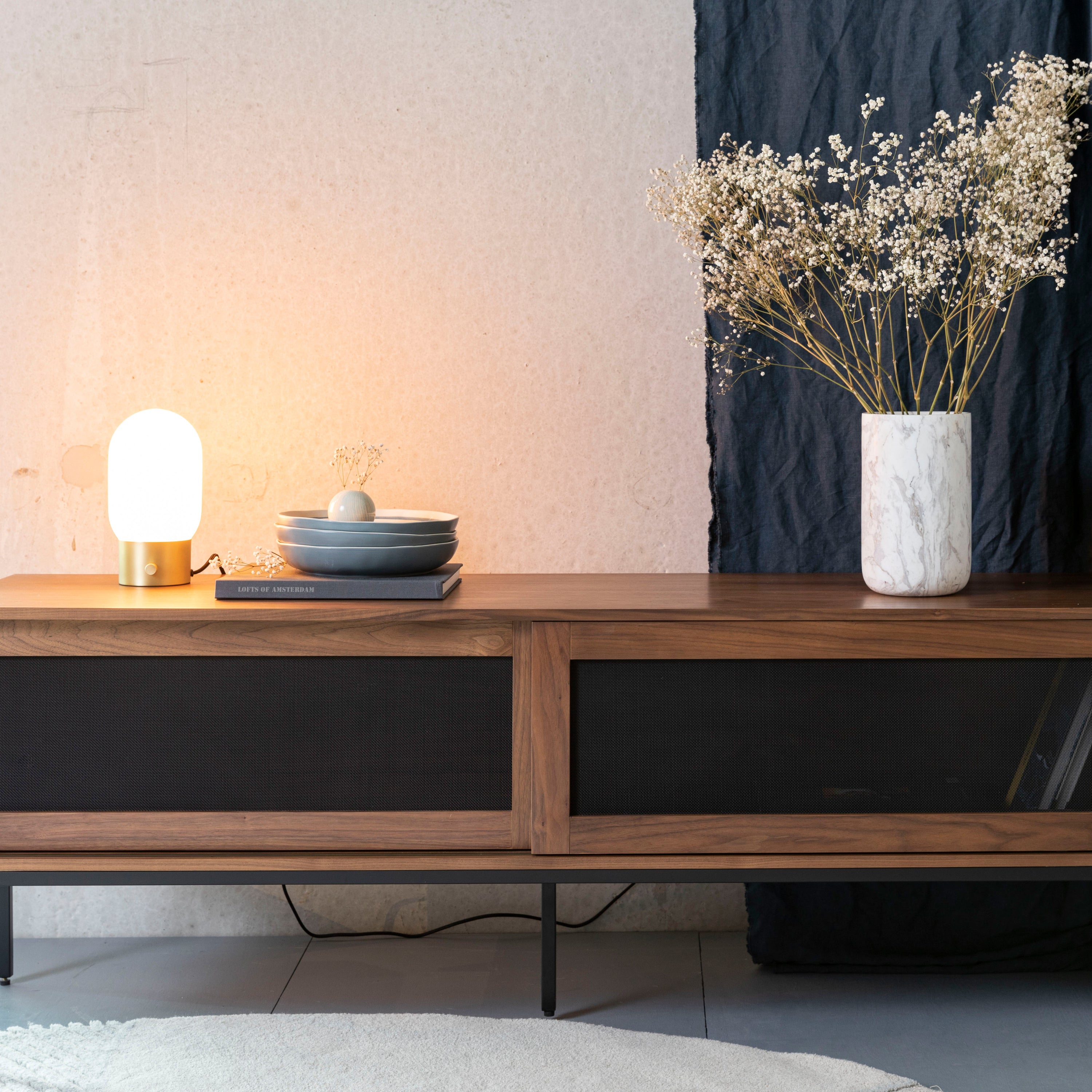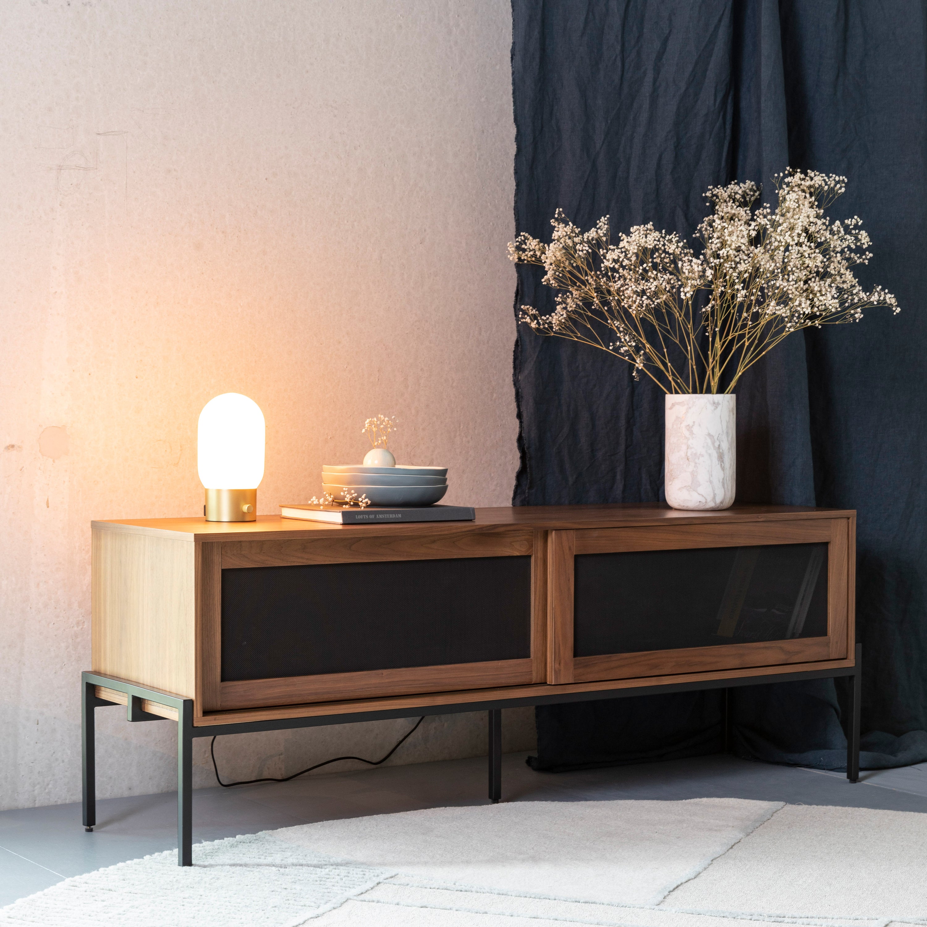 - Hij is gemaakt van MDF en heeft een walnootfineer finish