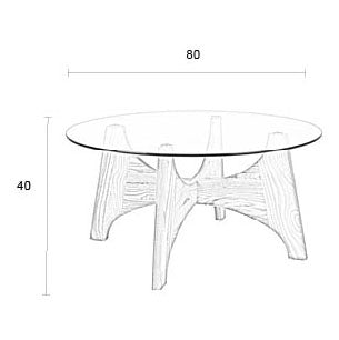 Het essenhouten onderstel, samen met het ronde glazen tafelblad, maakt het ontwerp van deze salontafel compleet. Door de combinatie van de pure materialen past de tafel in een rustig interieur.