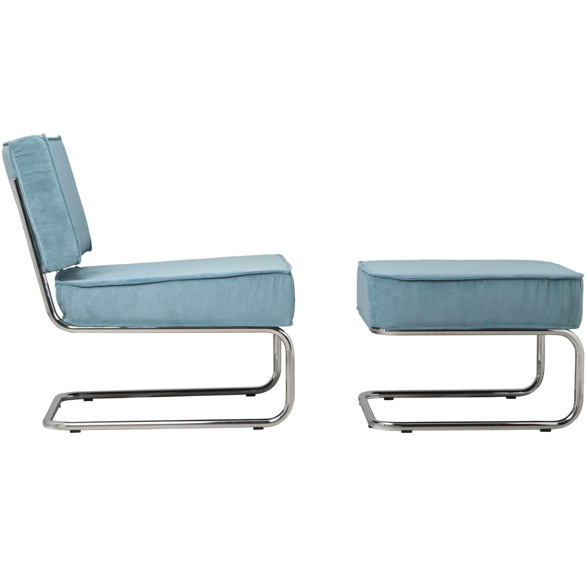 De Ridge Lounge Rib van Zuiver is een heerlijke lounge fauteuil. Het open chroomframe geeft het idee van een zwevende stoel. Dit houdt het beeld ook ruimtelijk, ideaal in kleinere ruimtes. Het chroom frame is voorzien van voetstukjes.