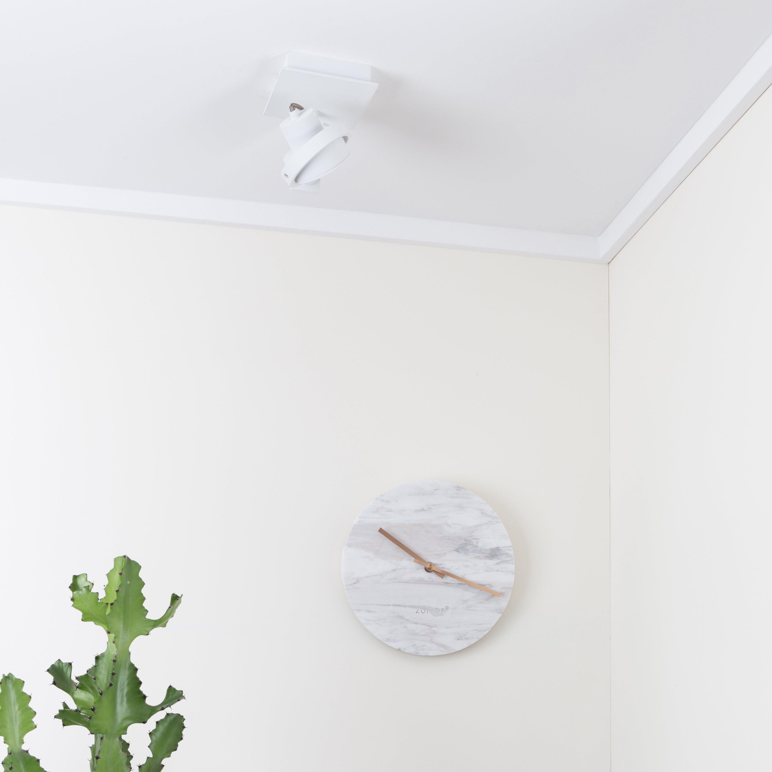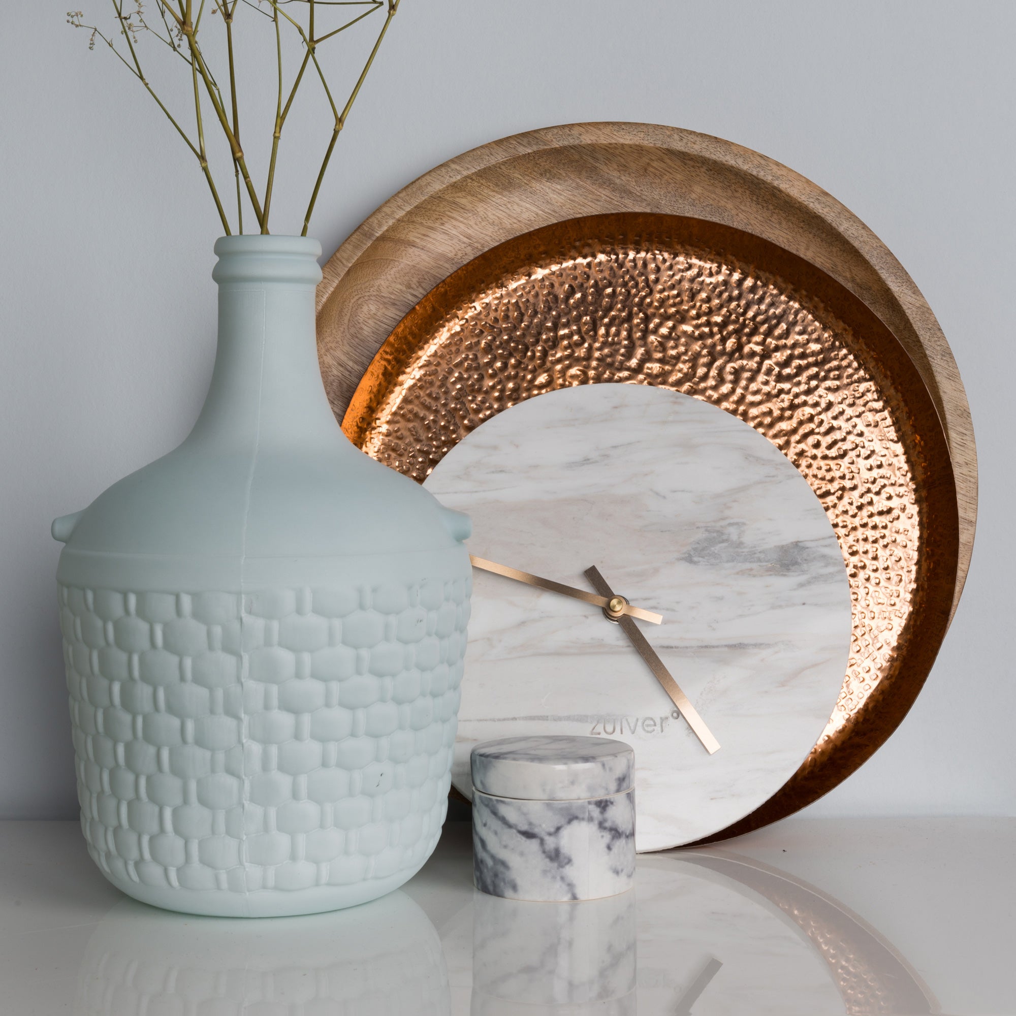 De Zuiver Marble Time Wandklok is bijzonder, chic en veelzijdig. De verfrissende combinatie van de materialen marmer en koper zorgt voor een klassiek en warm design. Een klok die allure toevoegt aan elk interieur. Hang de klok in de eetkamer, woonkamer, hal of slaapkamer. De klok werkt op één AA batterij.