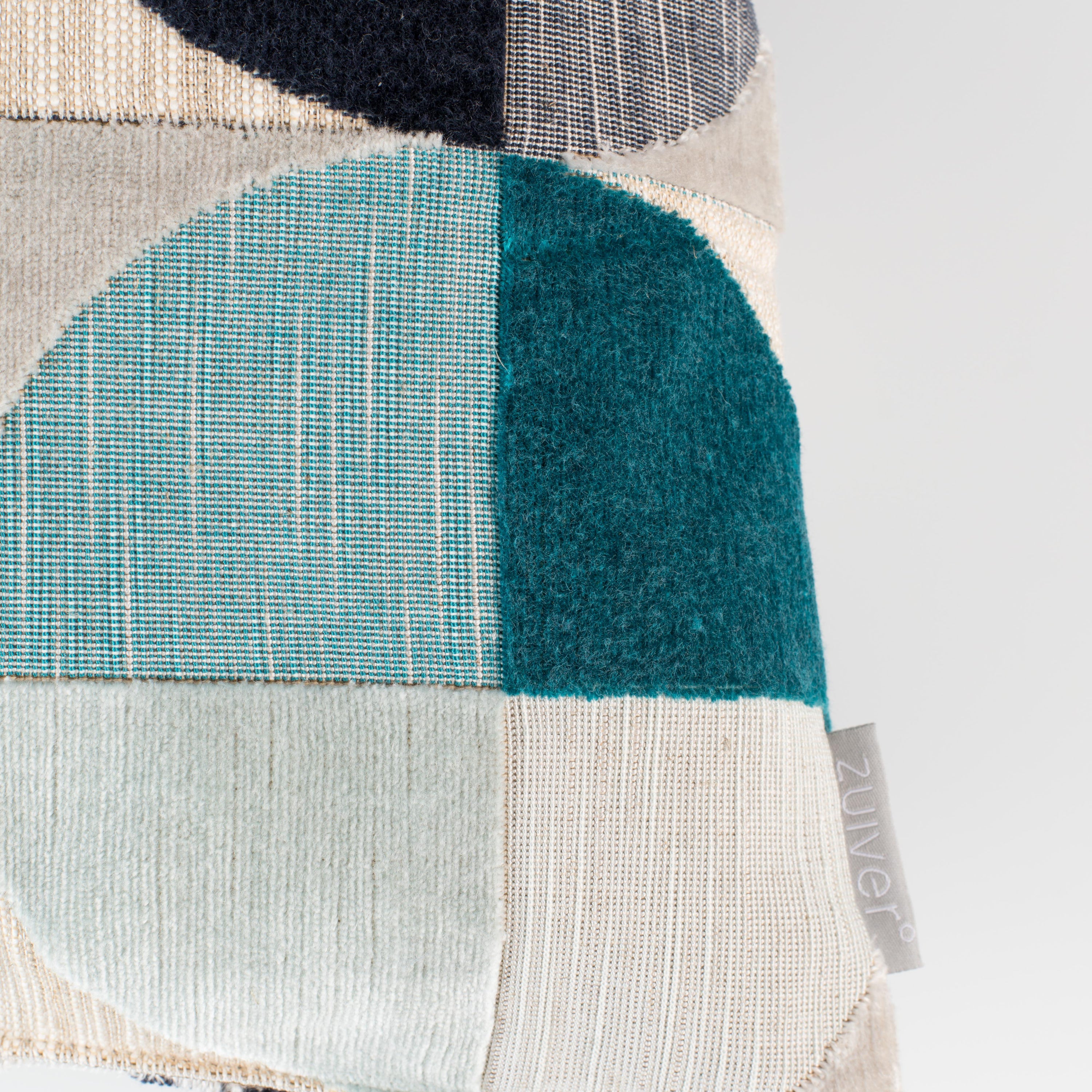 - De opdruk van dit kussen heeft verschillende structuren: lekker speels