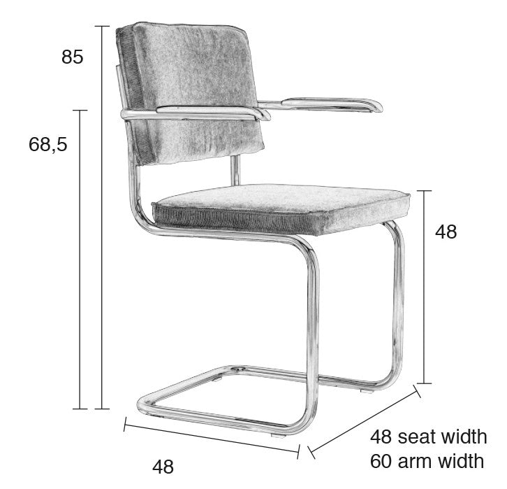 Kenmerken van de Ridge Rib stoel met armleuningen:
