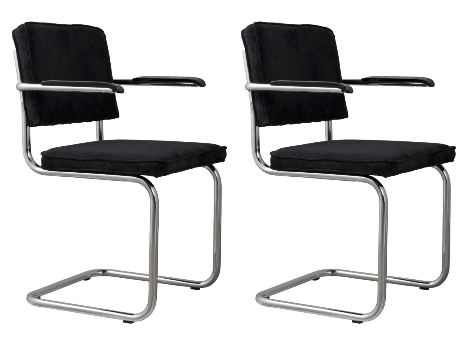 Stoel Ridge Rib Zwart met armleuningen van Zuiver is dé ideale vergaderstoel van dit moment maar natuurlijk ook voor aan je eettafel thuis.