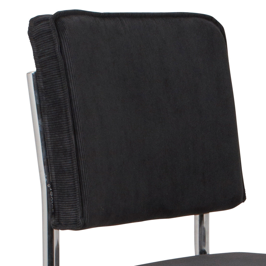 Trendy eetkamerstoel De Ridge Rib stoel van Zuiver past helemaal in de trend van nu, toch heeft deze stoel een tijdloze uitstraling. Dat betekent dat je er nog jaren mee vooruit kunt. De stoere ribstof gecombineerd met het chroombuis design geven de stoel een fraaie uitstraling. Dankzij het slimme buisframe veert de stoel een beetje. Dit maakt de stoelen zeer geschikt voor aan de eettafel. Gezellig, urenlang natafelen!