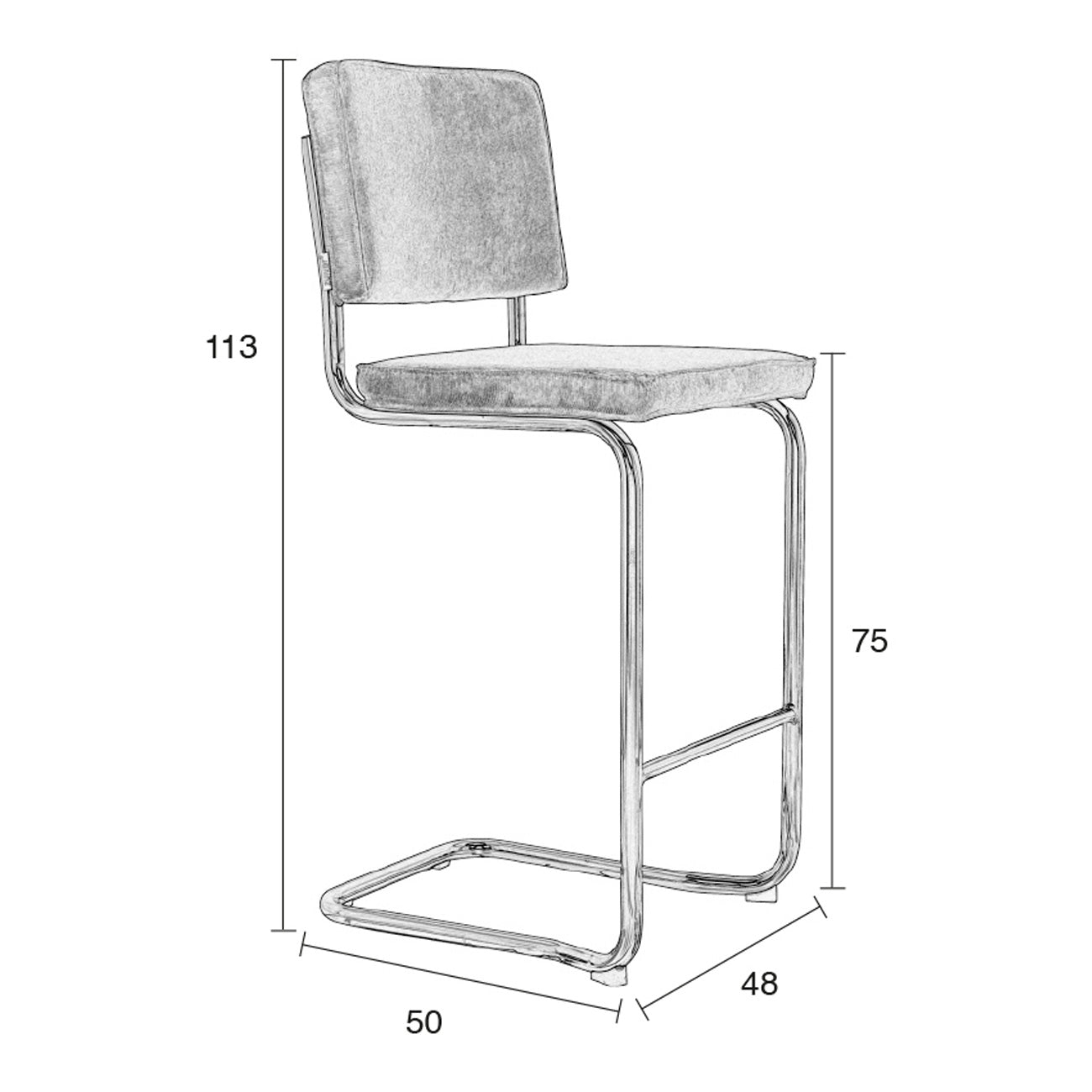 De bartafel wordt steeds populairder zowel binnen als buiten. Gezellig borrelen of eten aan een hoge tafel zorgt voor een geheel andere sfeer. Deze Ridge Rib Barstoel sluit perfect aan op deze trend! De comfortabele barkruk is uitgevoerd in een mooie, dikke kwaliteit ribstof en veert heerlijk mee. Bovendien heeft hij een handig voetsteuntje. Combineer de Zuiver Ridge Rib barstoel met een fraaie hoge tafel voor een unieke eet/drink hoek.