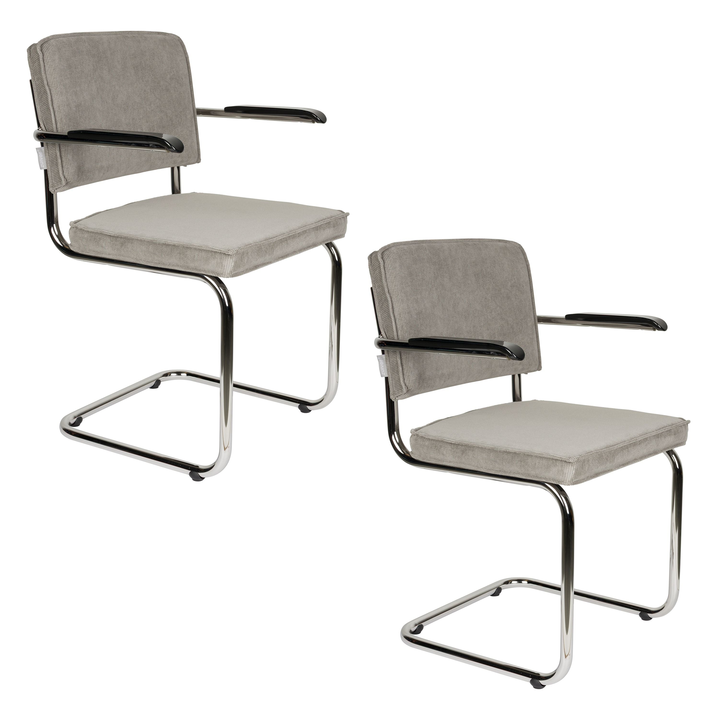 Zuiver Ridge Rib Eetkamerstoelen armleuning Lichtgrijs - Set van 2